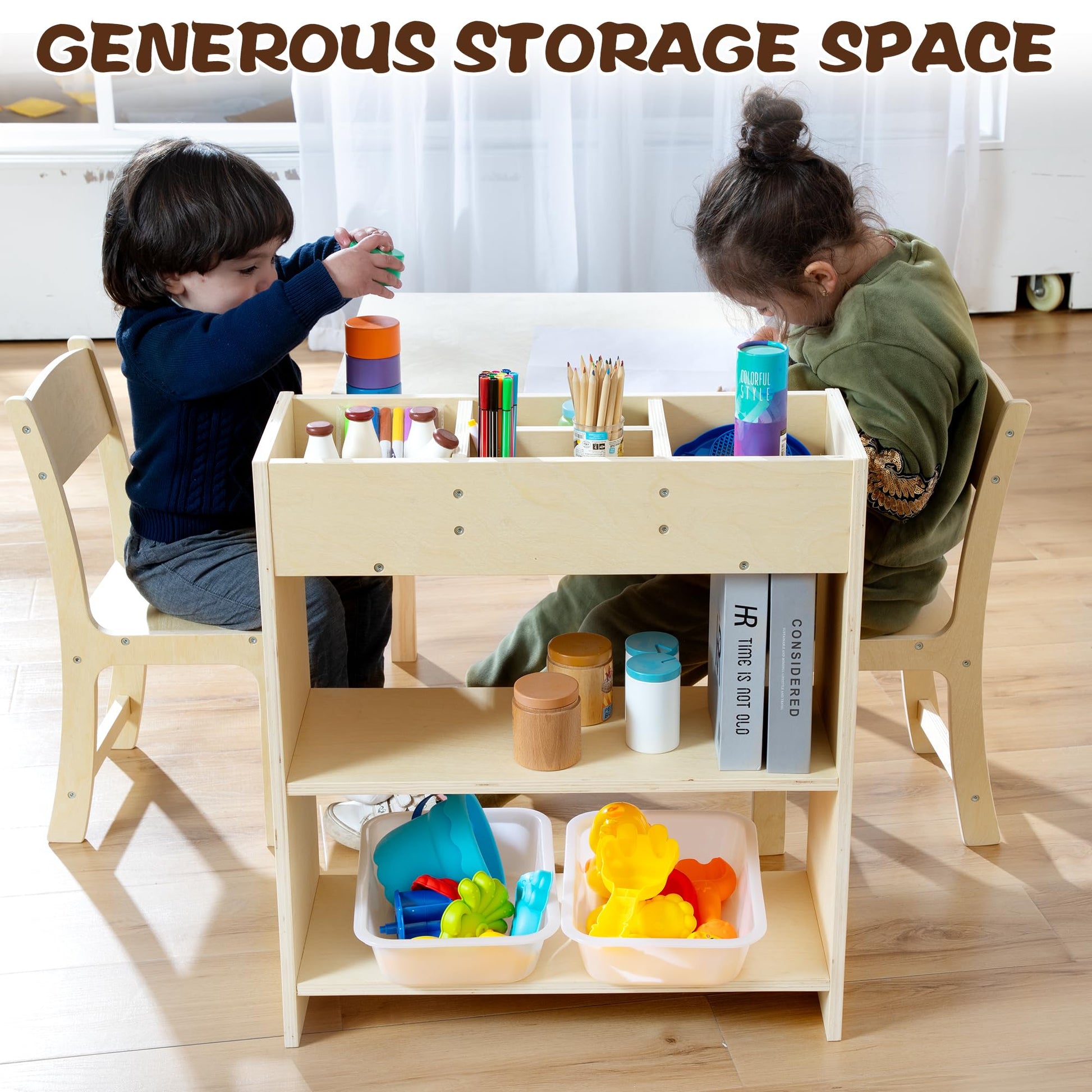 - Perfect for Toddlers & Storage-Friendly: With spacious storage, this set is ideal for keeping craft supplies, paints, and more organized. The large tabletop comfortably fits 2-3 children, making it perfect for arts, games, and snack time.