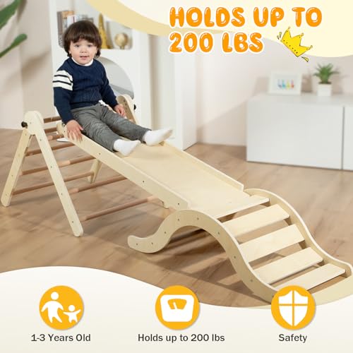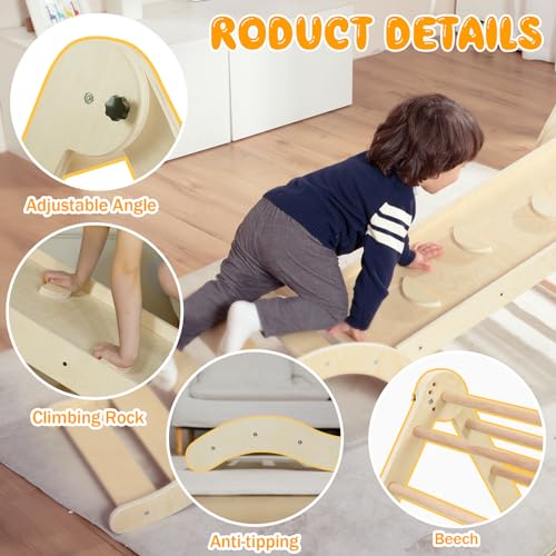- 【STABLE AND SAFE & ADJUSTABLE ANGLE】Due to the solid structure of the climbing triangle, it is very stable. There are no sharp edges and corners. The arc design at the bottom makes it have the same contact surface at different angles, which is more stable and safe. It can bear 176-200 pounds and is suitable for toddlers aged 1-3.