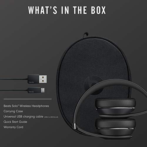 - What's in the box - Beats Solo3 Wireless headphones, Carrying case, 3.5mm RemoteTalk cable, Universal USB charging cable (USB-A to USB Micro-B), Quick Start Guide, Warranty Card (USB power adapter sold separately)
