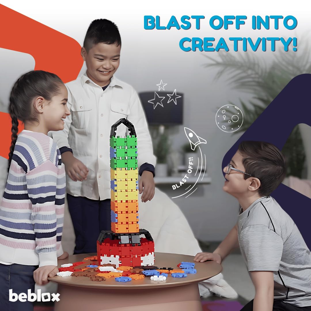 - 136-PIECE SET – VIBRANT BUILDING BLOCKS TOY FOR KIDS: Unleash your child’s creativity with 136 vibrant, easy-to-connect BEBLOX tiles! Each interlocking block clicks together smoothly, allowing kids to build a rocket using the included step-by-step instructions—or design their own imaginative creations. Perfect for ages 4+, this set encourages screen-free play and endless exploration at home, in school, or at camp.