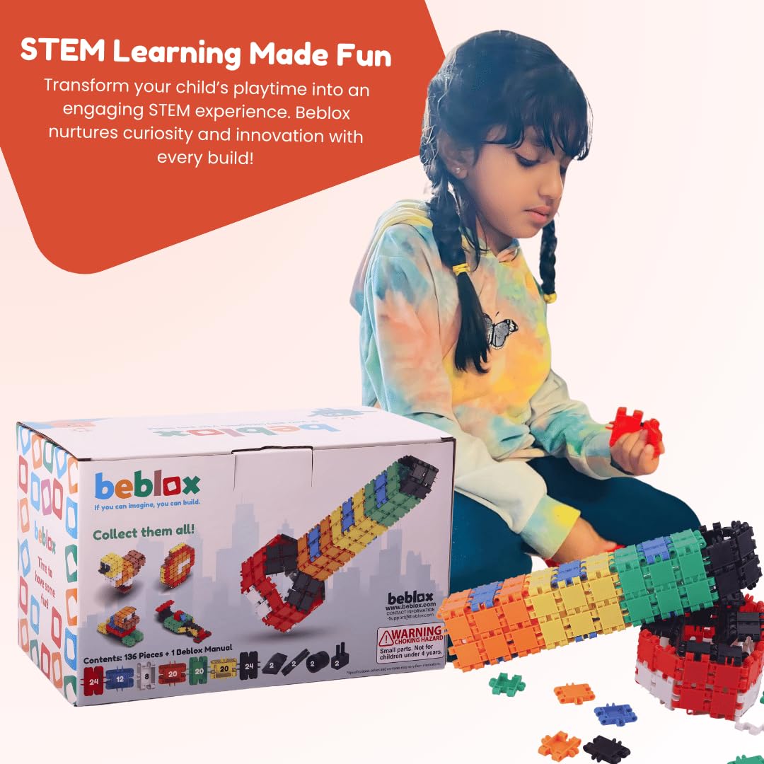 - INSPIRES IMAGINATION & BUILDS STEM SKILLS: BEBLOX isn’t just fun—it’s educational! These STEM building blocks help boys and girls develop problem-solving abilities, spatial awareness, and shape recognition while bringing their 3D ideas to life. From simple models to complex structures, kids learn through hands-on play and build confidence as young creators and thinkers.