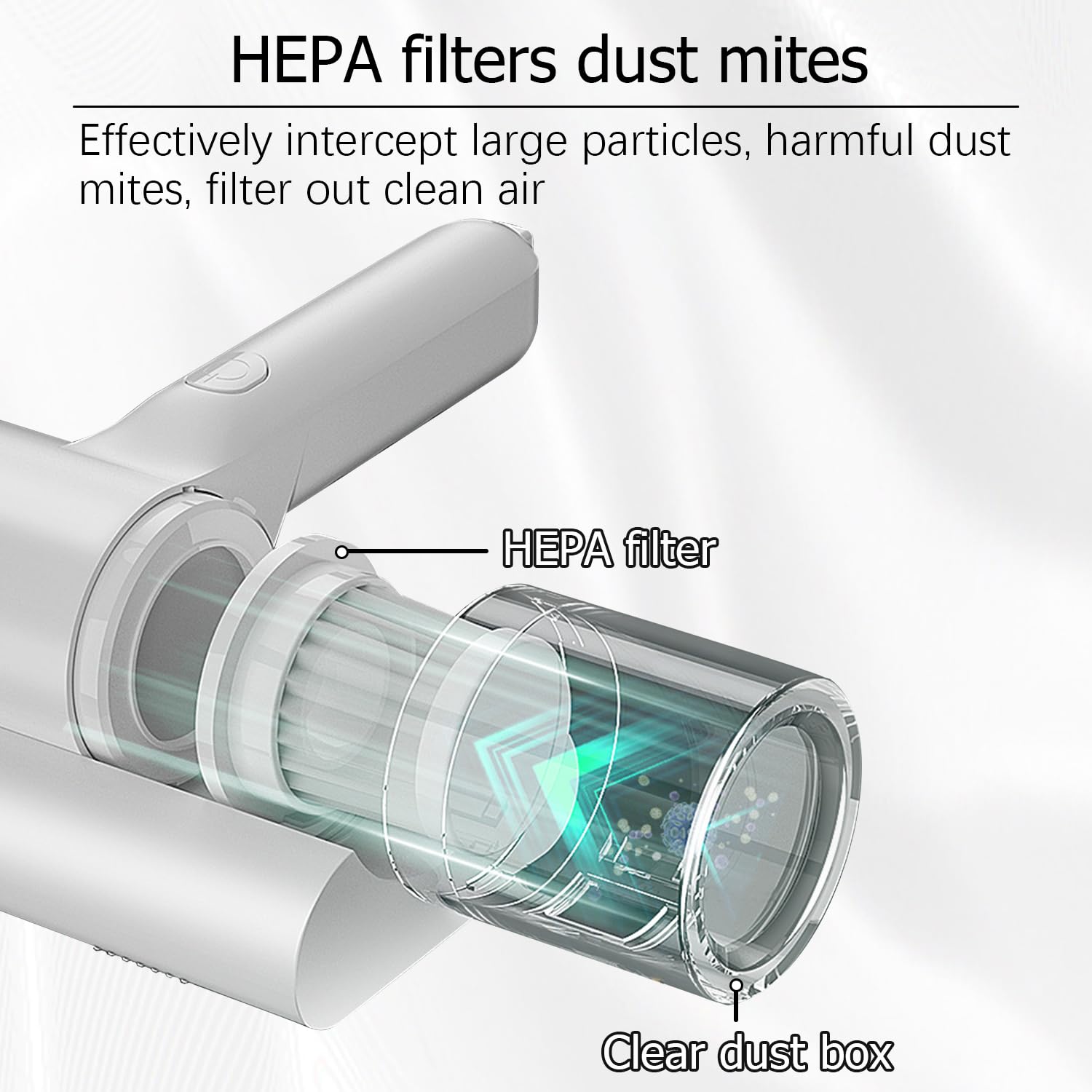 - 【High Efficiency Filtration】 The bed vacuum cleaner uses the latest upgraded filter for deep purification, capturing particles as small as 0.3 microns, isolating large particles of waste, and firmly locking and dirt. Makes cleaning easier and more thorough.