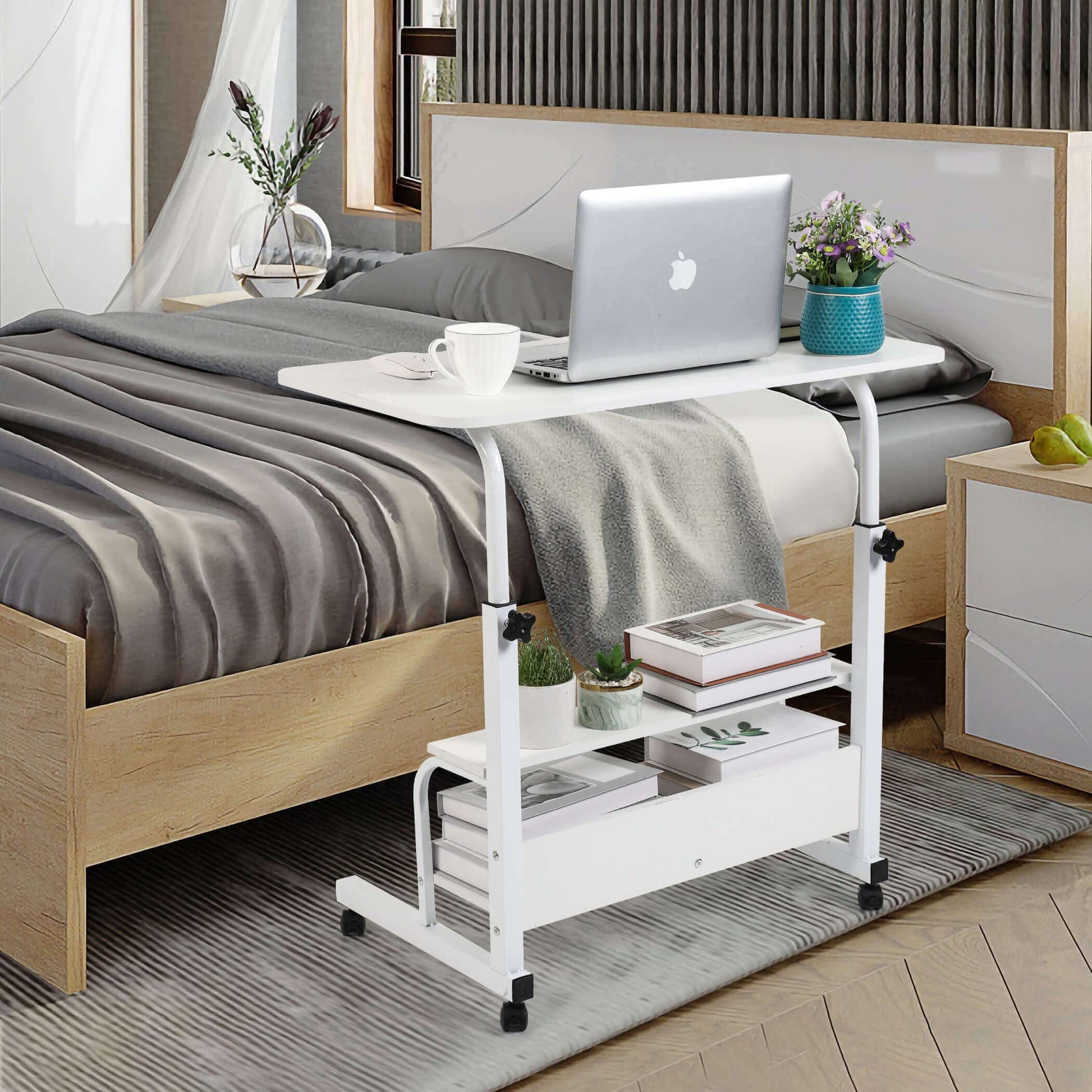 Bedroom Bedside Storage Rack Table Small Spaces Home Office Desk Height Adjustable Home Office Desk Multifunctional Table with Wheels Minimalist Portable Laptop Gaming Desk Size 15.7*31.5 Inch White