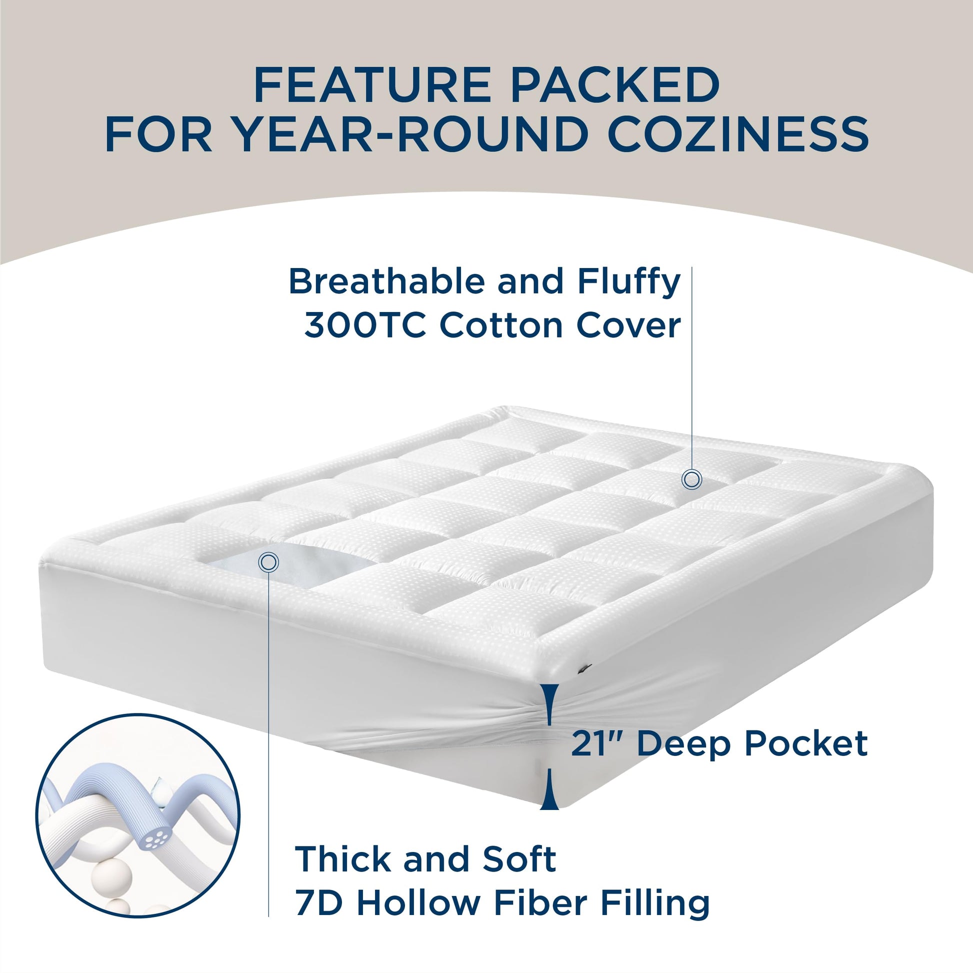 - Optimal Comfort: This mattress pad features a cloud-shaped quilted design to provide evenly distributed support that disperses the body’s pressure. All designed for a restorative night’s sleep.
