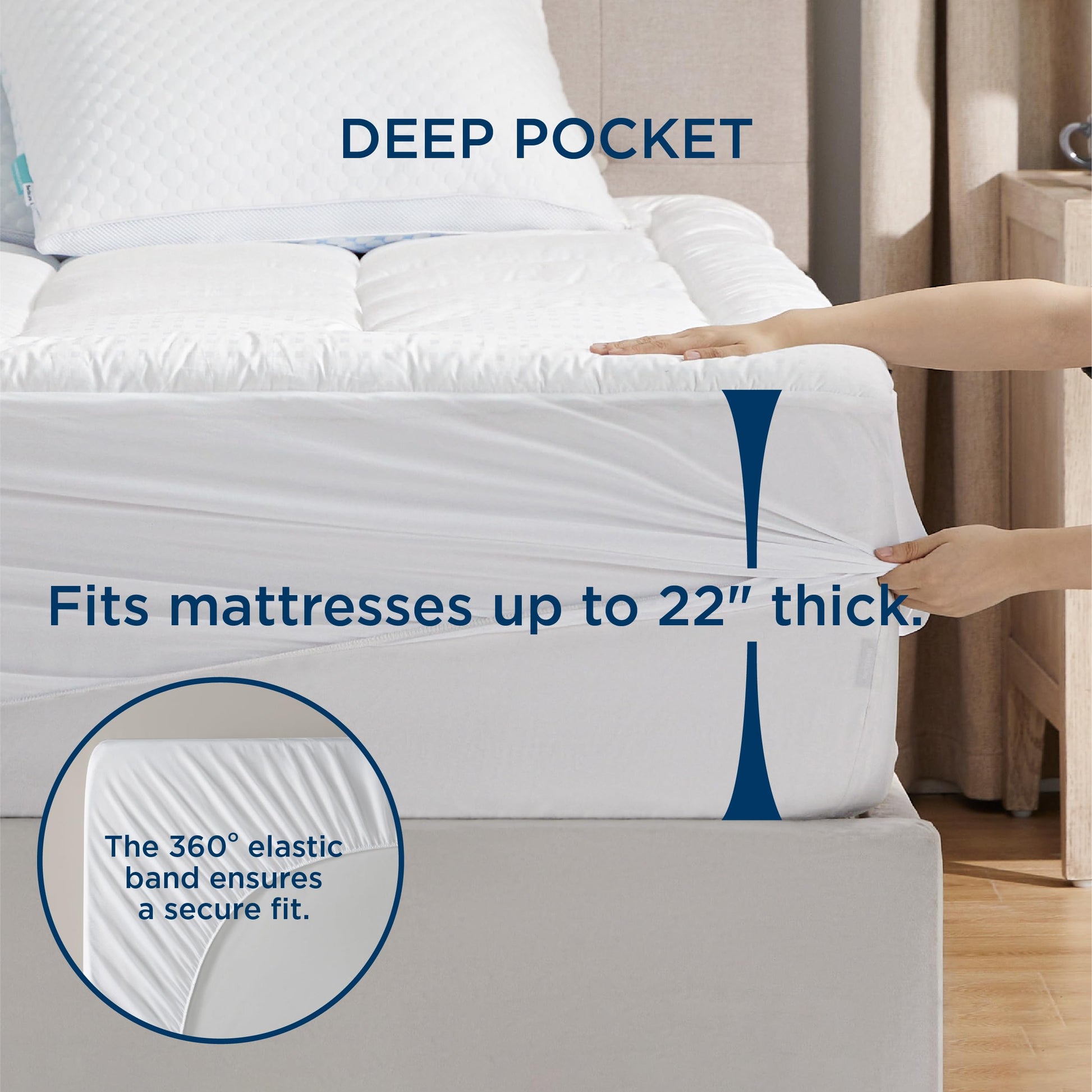- Deep Pocket: This queen size mattress cover can be easily stretched up to 21". The all-around elastic edging effortlessly secures the mattress pad in place without moving or shifting.