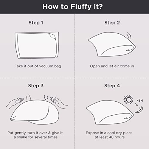 - Warm Tips: Upon unboxing, grab the sides of these pillows and gently shake and pat the pillows to puff up. Please allow up to 48 hours for the pillows to regain their max volume. These pillows are machine washable on cold water, and tumble dry low for a like-new restoration.
