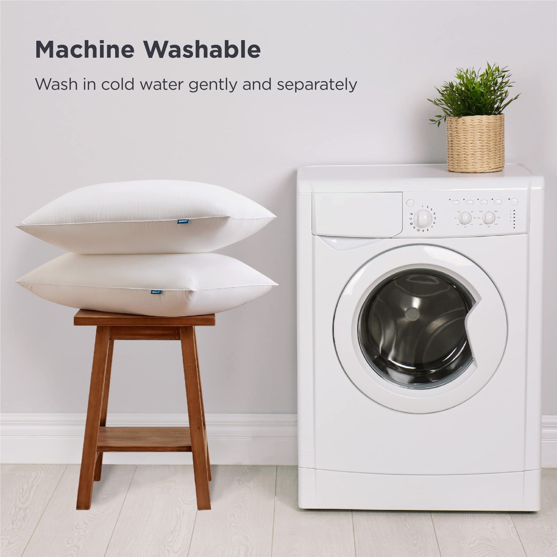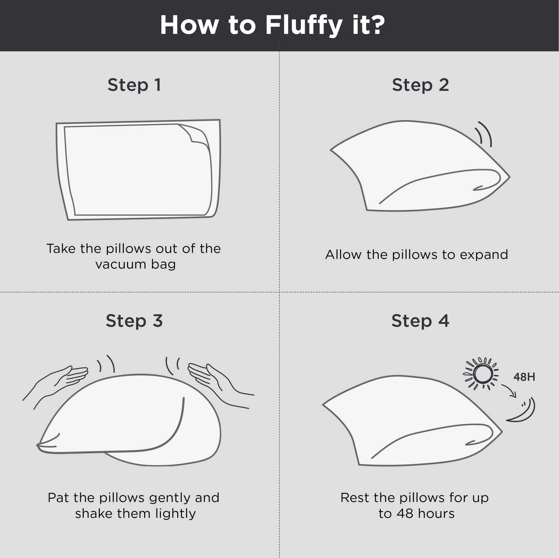 - Warm Tips: Upon unboxing, grab the sides of these pillows and gently shake and pat the pillows to puff up. Allow up to 48 hours for the pillows to regain their max volume. These pillows are machine washable on cold water, and tumble dry low for a like-new restoration.