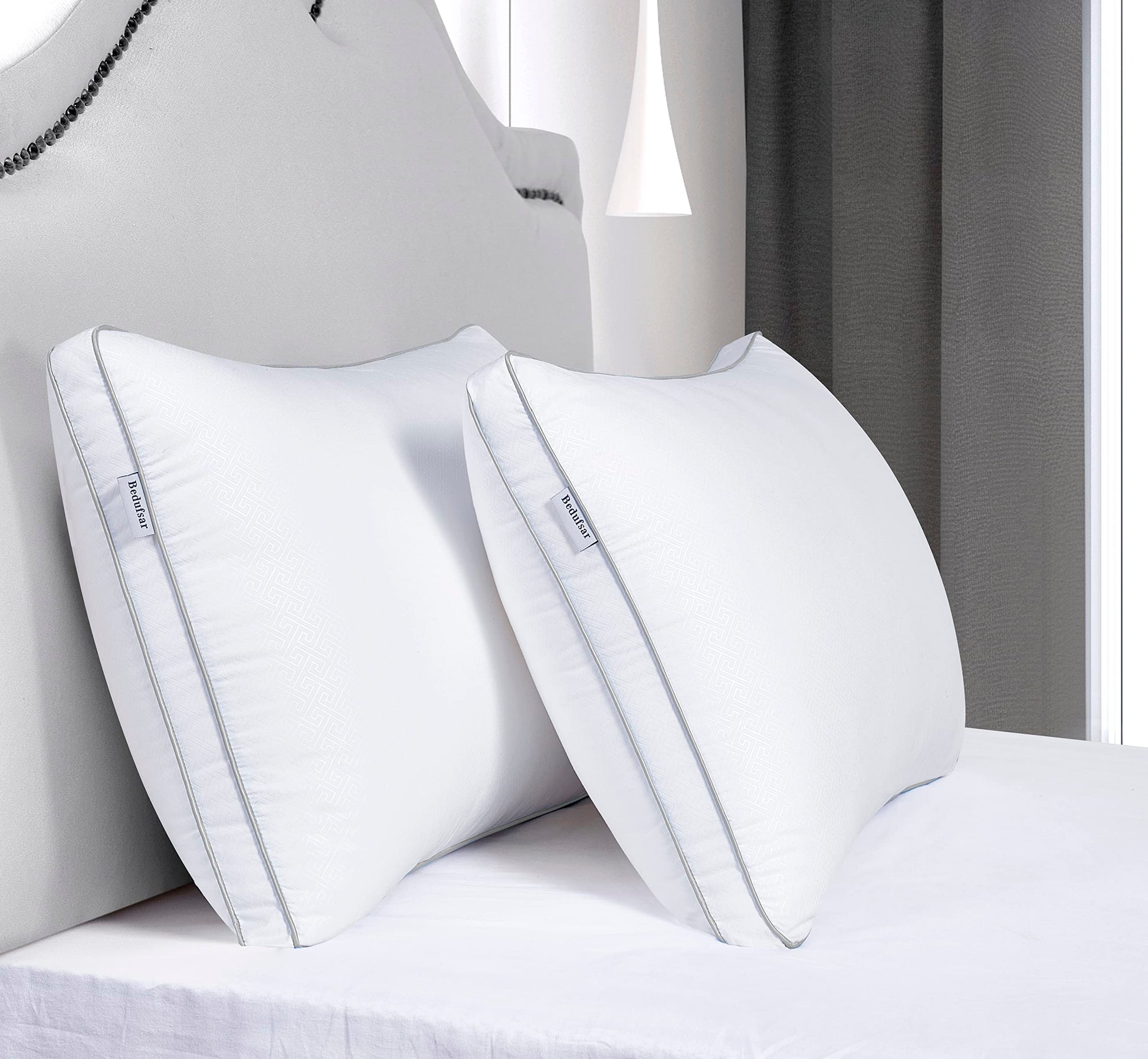 Bedufsar Bed Pillows for Sleeping, Queen Size Pillows Hotel Quality Set of 2, Firm and Supportive Gusseted Pillows for Side and Back Sleepers, Cooling Down Alternative Fluffy Soft Pillow (20x30 in)