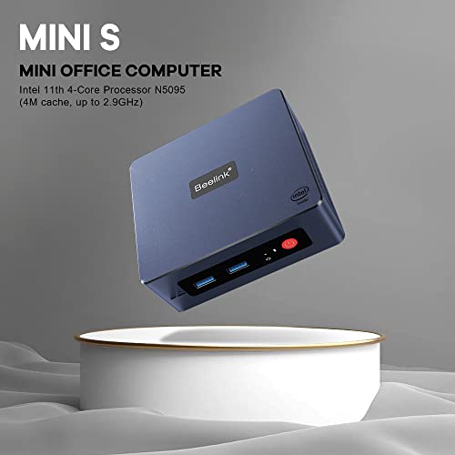 Beelink Mini PC, Mini S Intel 11th Gen 4-Cores N5095, Mini Desktop Computer 8GB DDR4 RAM 128GB SSD, Mini Computer Dual HDMI 4K UHD/Gigabit Ethernet/Dual WiFi/BT4.0/Linux PC(Ubuntu)/HTPC/Family-NAS