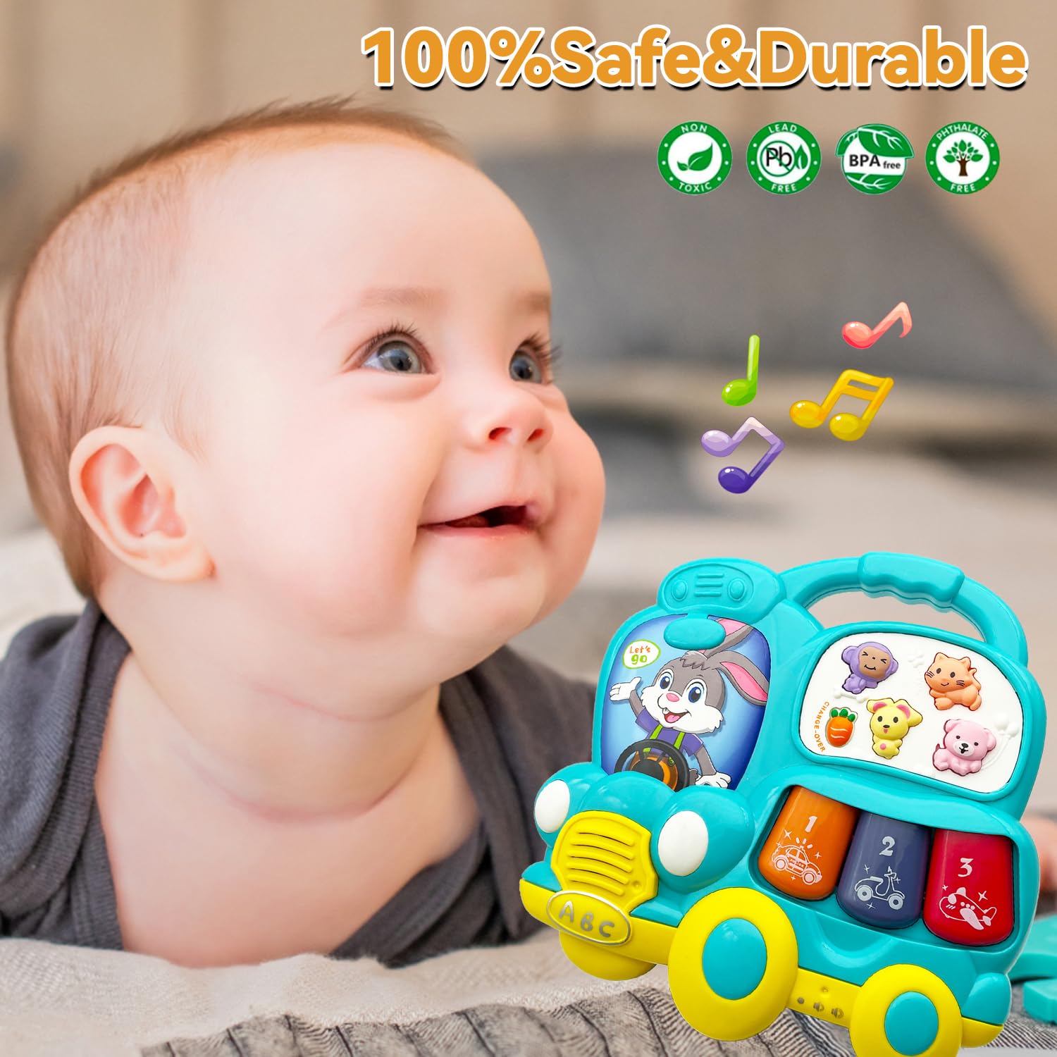 - Cute Animal Piano: The car lights will light up when your child plays this baby toy; give your child this keyboard musical instrument for an early opportunity to learn and play simple musical tunes and sounds of helicopter/motorcycle/police car.