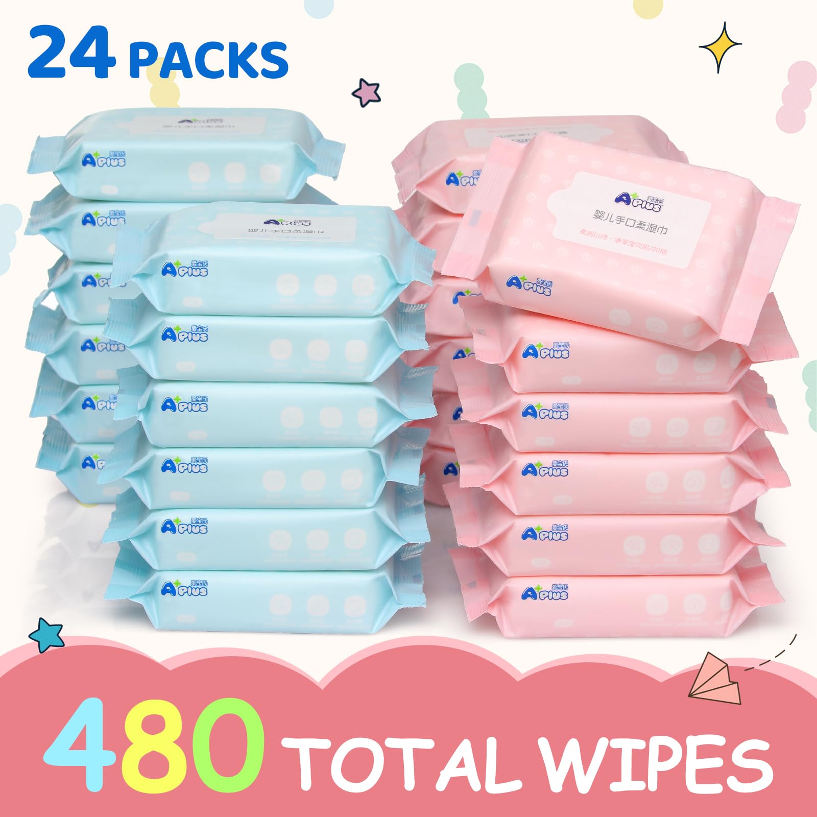 Beitier Baby Wipes, Unscented Wet Wipes 480 Count, 99.9% Water Wipes, Thick and Soft, Gentle for Sensitive Skin, Perfect for babies and adults on the go (24 Pack)