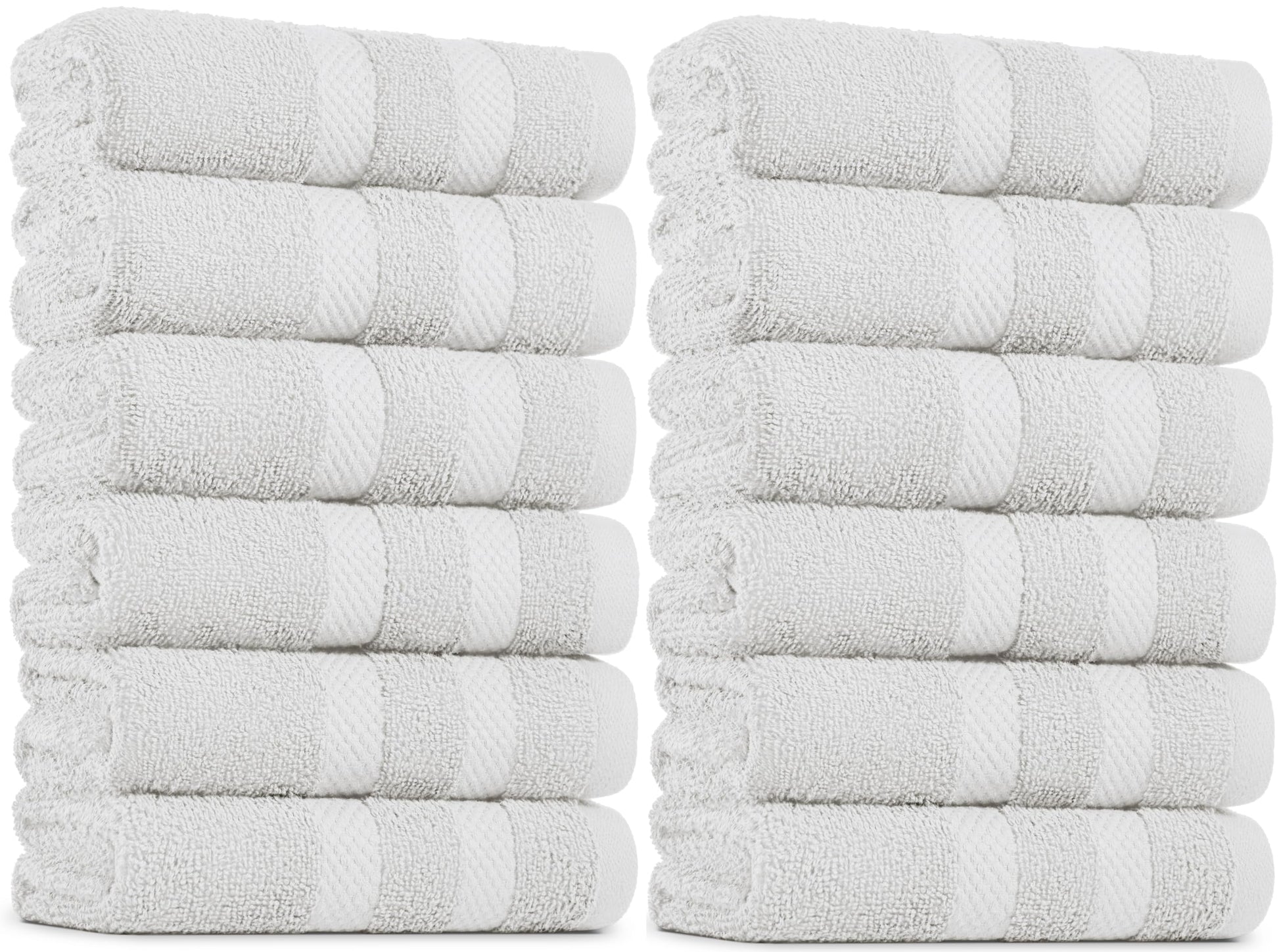 - Each hand towel measures 16”x30”, providing ample coverage and absorbency for drying hands or face.