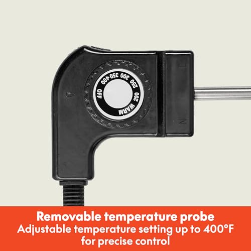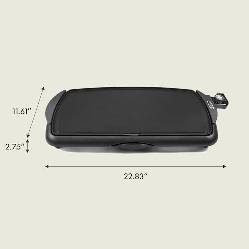 - ELECTRIC GRIDDLE: This hardworking griddle features a 1500 watt heating system, cool touch handles & a base with a built in ledge with backstop for easy pancake flipping. The removable probe with easy-to-use dial allows for precise temperature control