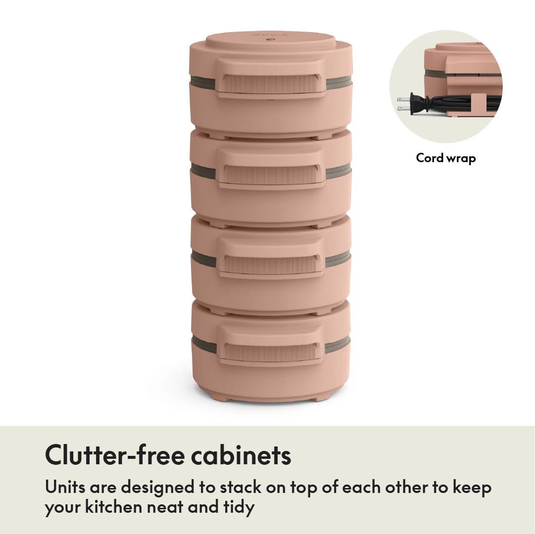 - Stack & Store—No Mess, No Stress: Got more than one chaffle maker? No problem! Stack ‘em up, snap ‘em in, and store them neatly with zero clutter. The stackable design and cord storage keep your kitchen tidy, so you can focus on the fun part—eating!