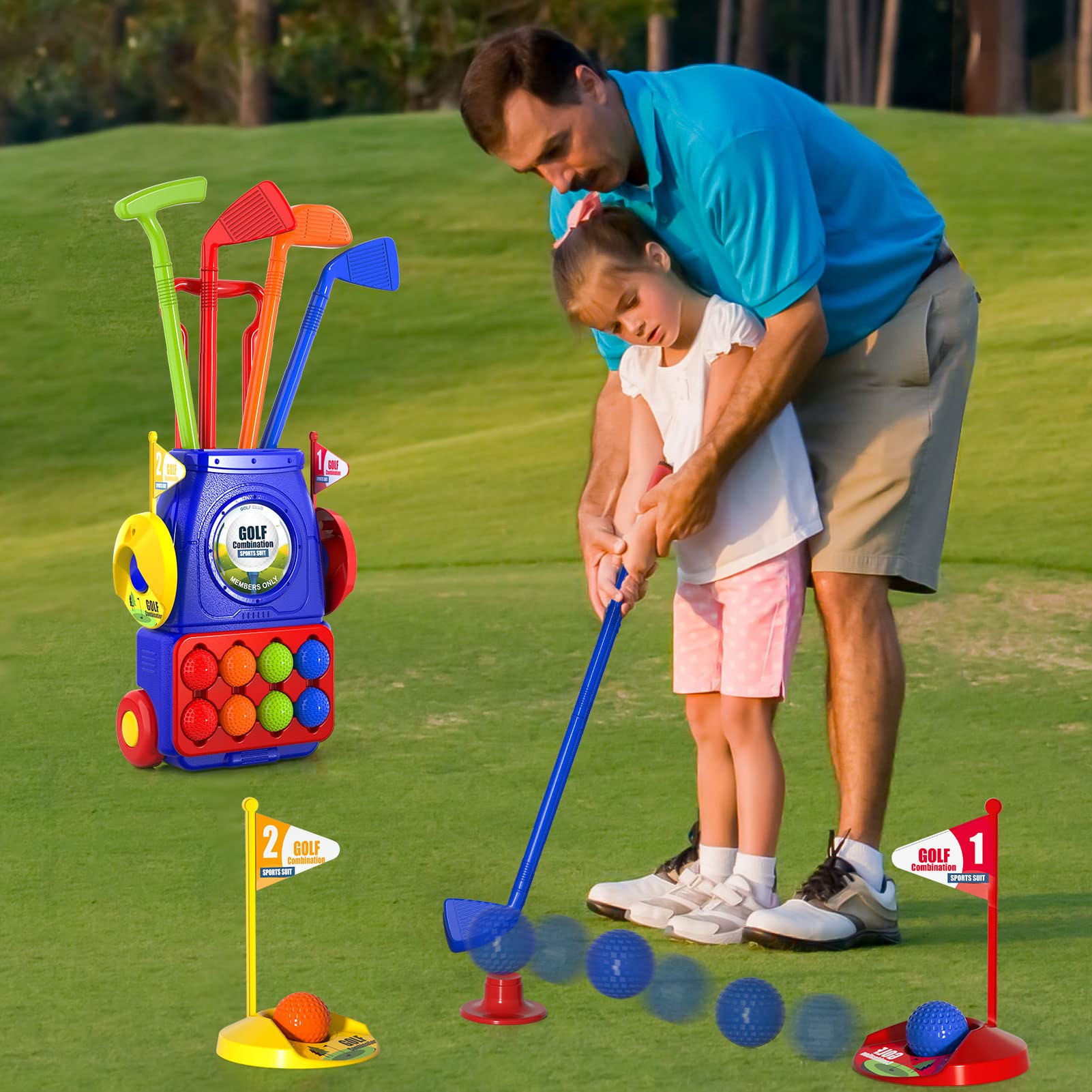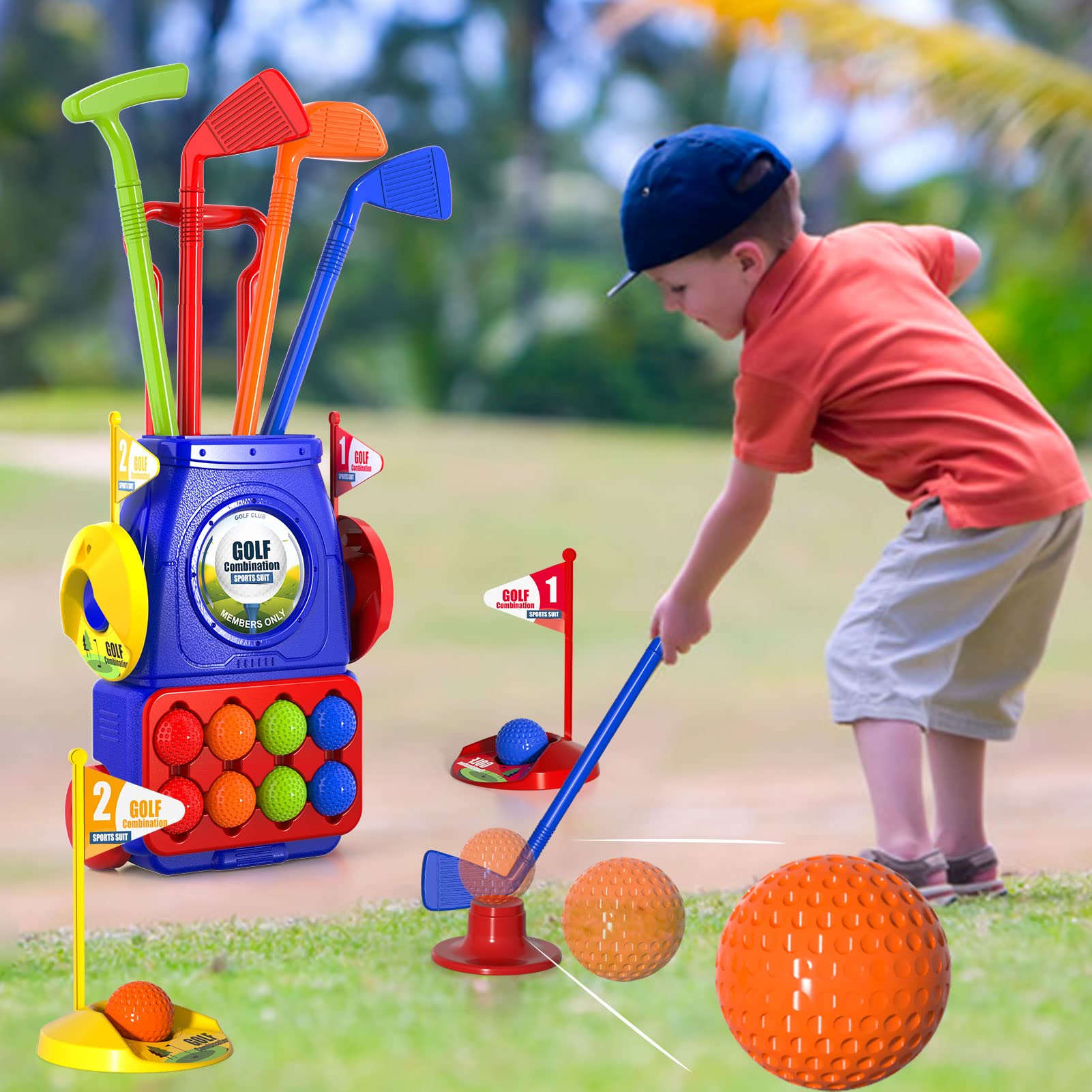 - Perfect Christmas Gift For Kids Boys Girls - Our golf toys set Made of toxic-free materials, BPA-free, safety always comes first. Through market research, the hardness of the club is enhanced, and it is not easy to break. It will be an excellent birthday and christmas halloween toy gift for 3 4 5 6 year old boys girls kids, especially golf fans.