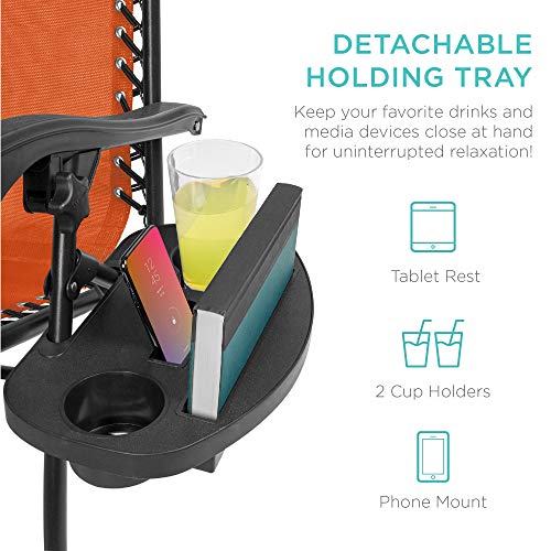 Best Choice Products Set of 2 Adjustable Steel Mesh Zero Gravity Lounge Chair Recliners w/Pillows and Cup Holder Trays - Burnt Orange