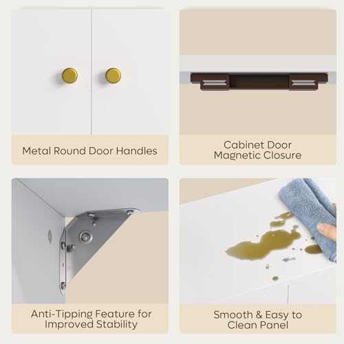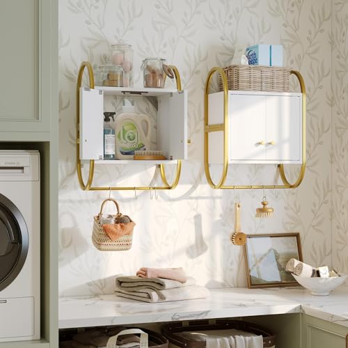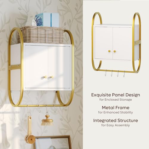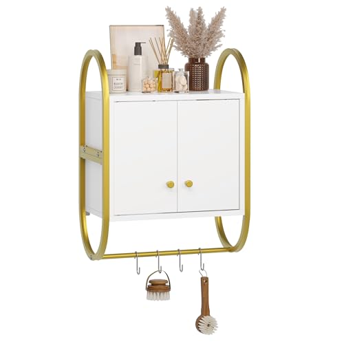 Bestier Floating Shelves for Wall, Kitchen Wall Cabinet with 2 Door and Towel Rack, Wall Shelves for Kitchen, Bedroom, Living Room, Bathroom, Office, Modern White