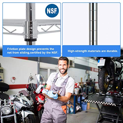 Details: This is 5 tier commercial wire shelf,all the shelf is can adjust height .The shelving unit is made of steel wire shelving.The weight limit for each shelf is 250 pounds, and the total weight limit for the entire shelf is 1250 pounds. The storage shelves provide an enormous amount of space for you and no occupy too much space.You can use this wire shelving in the kitchen bedroom garage and more. Tools, books,household appliances and other things can be placed on this wire shelving. Features Easy to assemble, no tools needed. Improve addition space, no occupy too much space. Adjustable wire shelving,Easy to store things. Sturdy metal construction,can withstand heavy objects. Brand new and high quality. The surface of the garment rack is chrome-plated. Works Anywhere,suitable for bedroom, cloakroom, laundry room,store clothing, shoes, socks, bags Rack storage shelves wire shelf wire shelving unit rack storage shelves shelving wire shelf shelving unit wire shelving metal shelf metal rack storage shelf metal shelves wire rack garage shelving Metal Shelving wire shelves heavy duty shelving rack shelf white shelving unit Storage Rack metal shelving unit wire rack shelf garage shelving unit wire shelving unit shelving unit with wheels storage shelving Utility Shelves rolling shelves adjustable shelves shelving unit heavy duty Metal Storage Rack storage racks wire rack shelving shelving units and storage steel shelving Metal wire shelving storage shelves heavy duty heavy duty shelving unit metal shelf unit steel shelving unit storage shelving unit wire shelving rack metal rack shelving Layer Shelf Steel Wire Shelving Shelves Unit metal rack shelf garage shelving heavy duty storage rack heavy duty Steel Wire rack storage shelf unit wire shelving wheels storage shelves