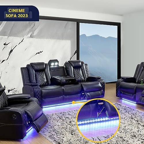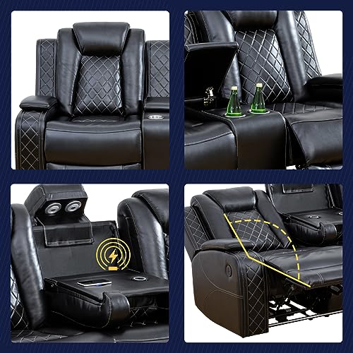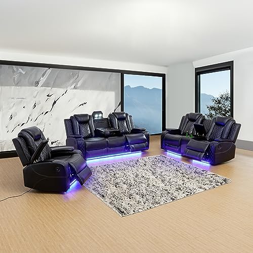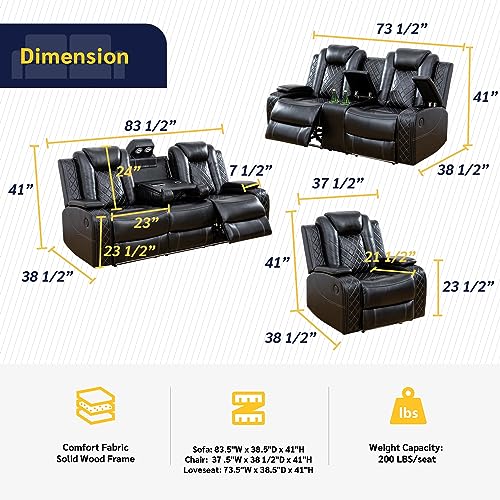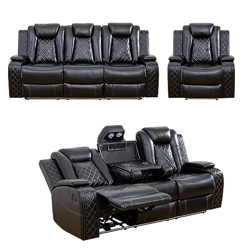 Beverly Fine Funiture Katie 3 Piece Faux Leather Power Recliner Living Room Set (Sofa, Loveseat, and Chair), Black