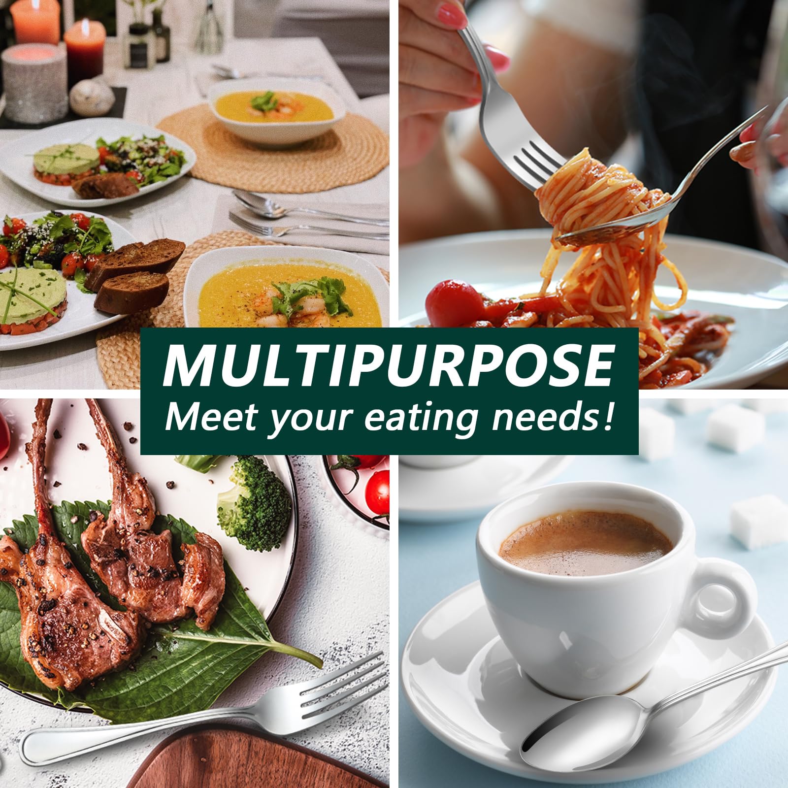 - 【Multiple Uses】The food grade stainless steel silverware set is not only ideal for family daily use, parties, gatherings, family dinners, wedding and other formal occasions, but also can be applied to home, camping, hotel, restaurant or when you need extra flatware sets