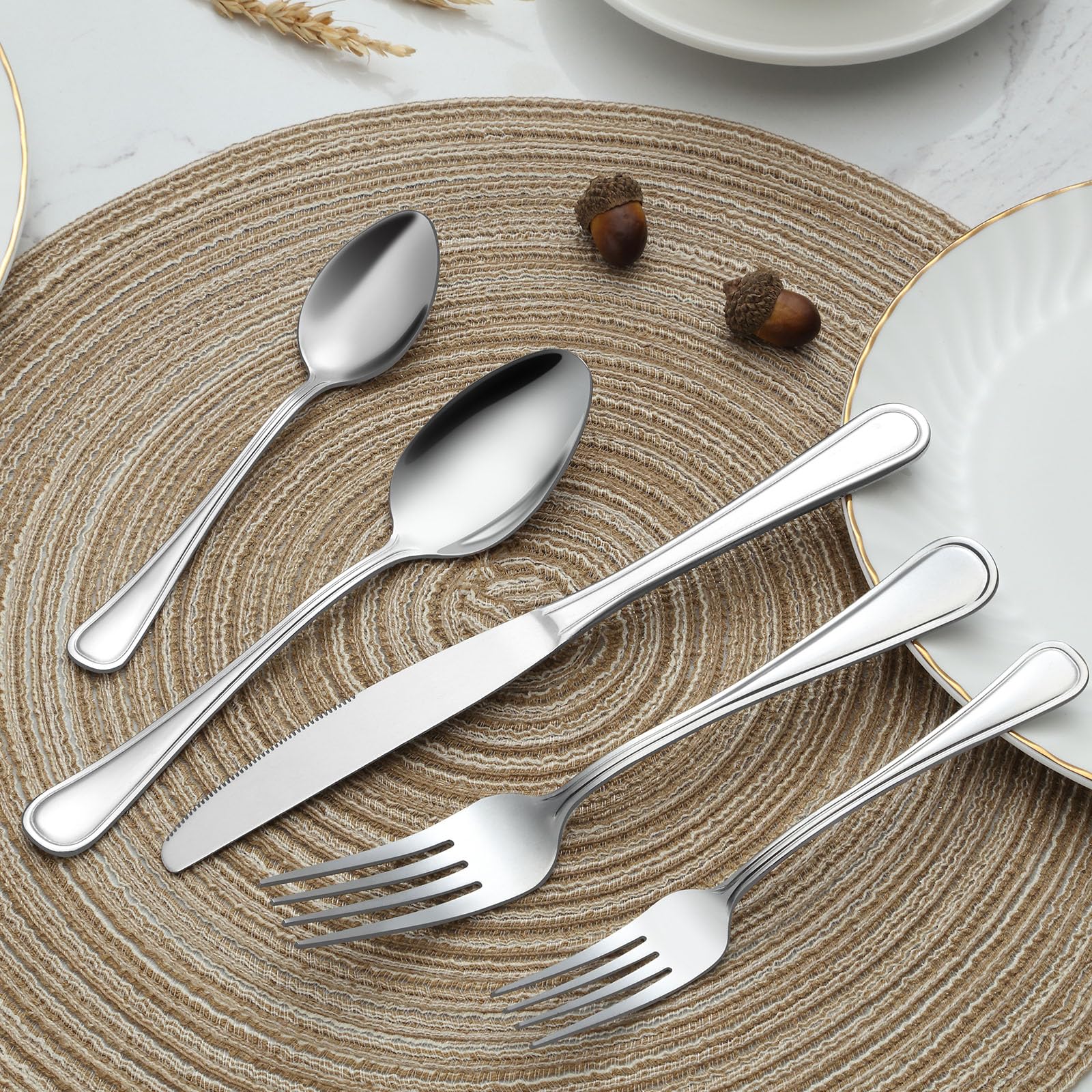 - 【Mirror Polished & Ergonomic Design】 The silverware sets are mirror polished and has smooth edge that always keep shiny. Besides, The utensil sets are ergonomically designed to fit the shape of the hand, providing good balance and ensuring comfort when using the silverware