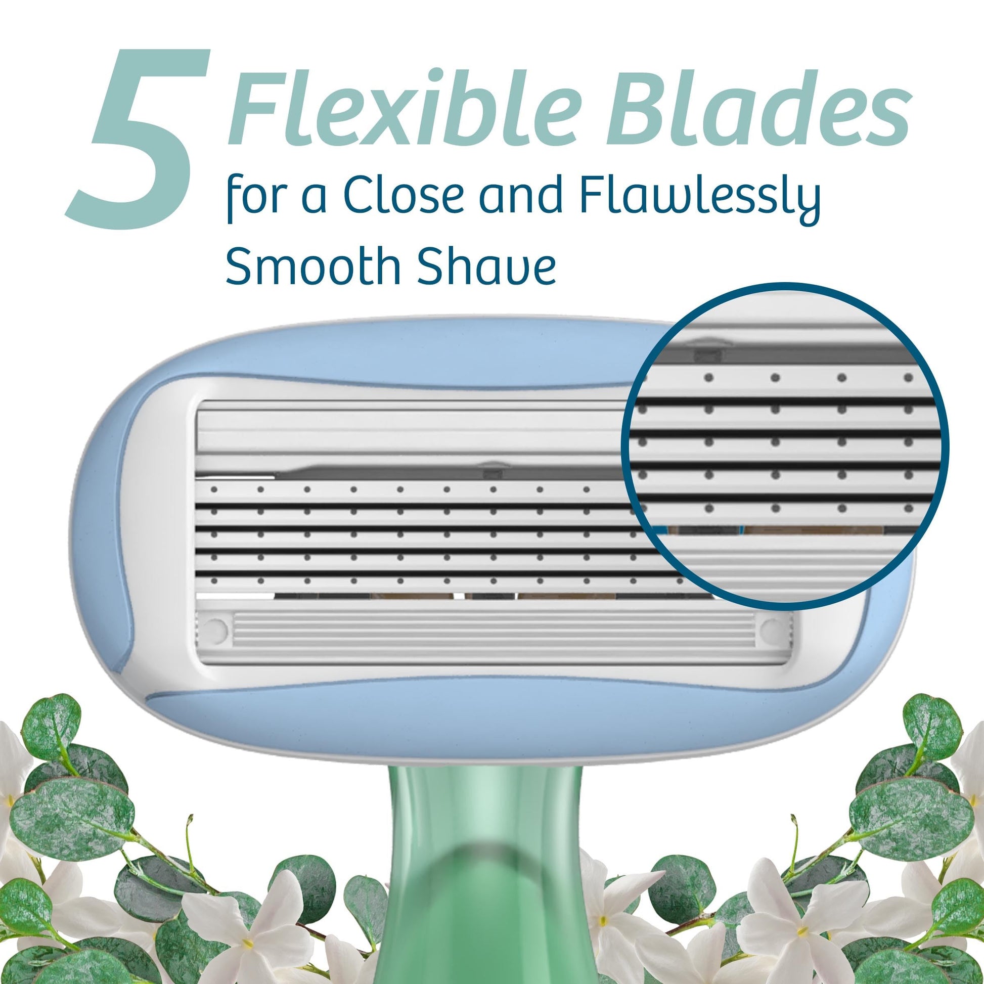 - Women's disposable razors with five flexible blades for a close and flawlessly smooth shave – even around knees and ankles