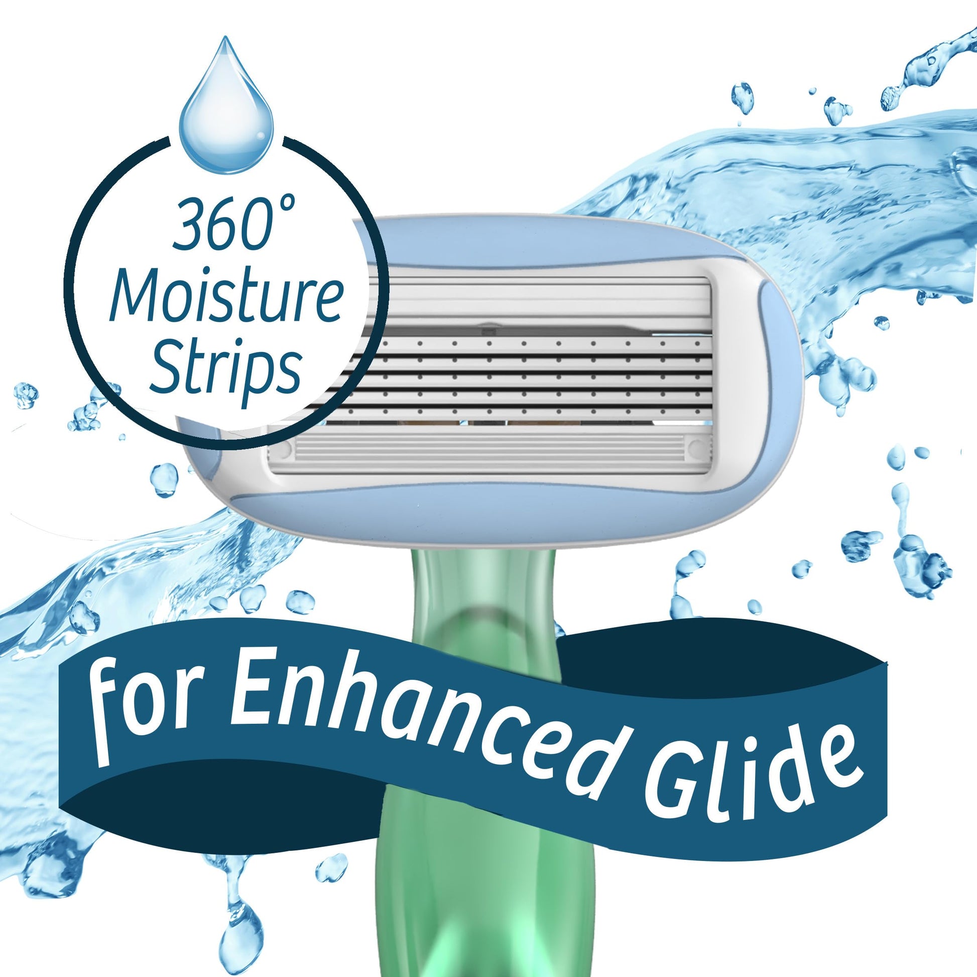 - Women's razors with 360-Degree advanced Comfort Shield that helps protect skin from irritation and is enriched with almond oil for enhanced glide