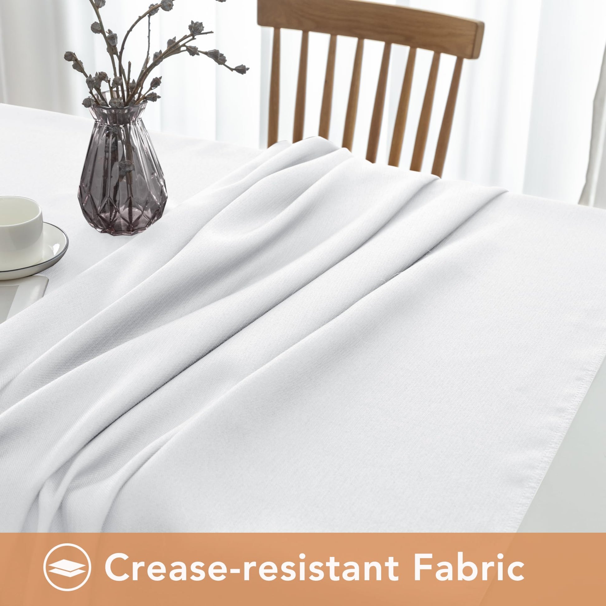 - What's in the Package? Each package contains 2 packs of white textured table cloth made from 100 percent premium polyester fabric.