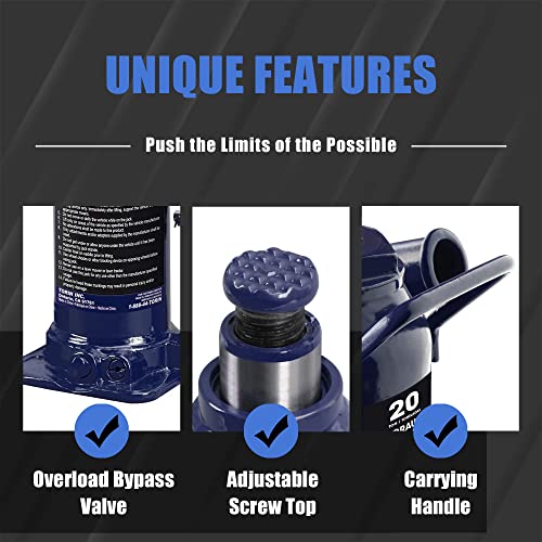 BIG RED 20 Ton (40,000 LBs) Torin Hydraulic Stubby Low Profile Car Bottle Jack for Auto Repair and House Lift, Blue, AT92007AU