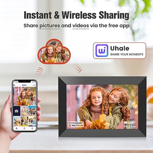- 【Private & Safe Sharing of Pictures】BIGASUO cloud photo frame uses a secure network encryption channel to transmit your photos and videos to protect personal privacy and easily share beautiful moments with family/lover. Just connect the electric photo frame to WIFI, and you can invite unlimited friends, and share photos or videos (up to 30 seconds) anytime and anywhere through the free "Uhale" app to the digital photo frame. Also upload photos from your computer to the frame via "Uhale" Web.