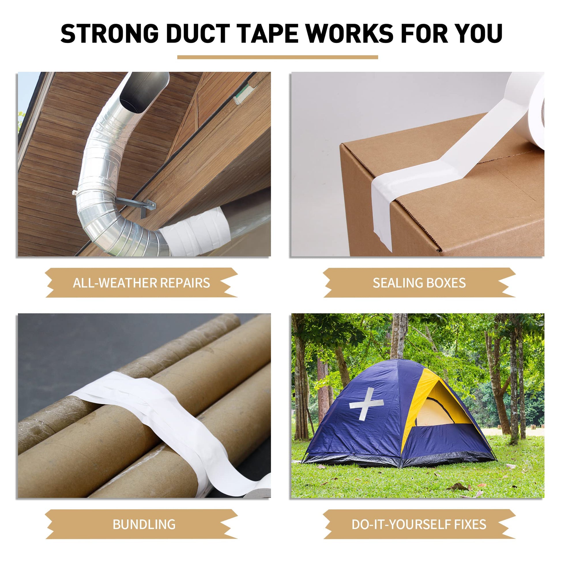 Binyuellr 2 Pack White Duct Tape Heavy Duty - 1.88 in x 35 Yard, Waterproof, Strong, Flexible, No Residue and Tear by Hand - Use for Indoor & Outdoor, Repairs, Industrial, Professional Use