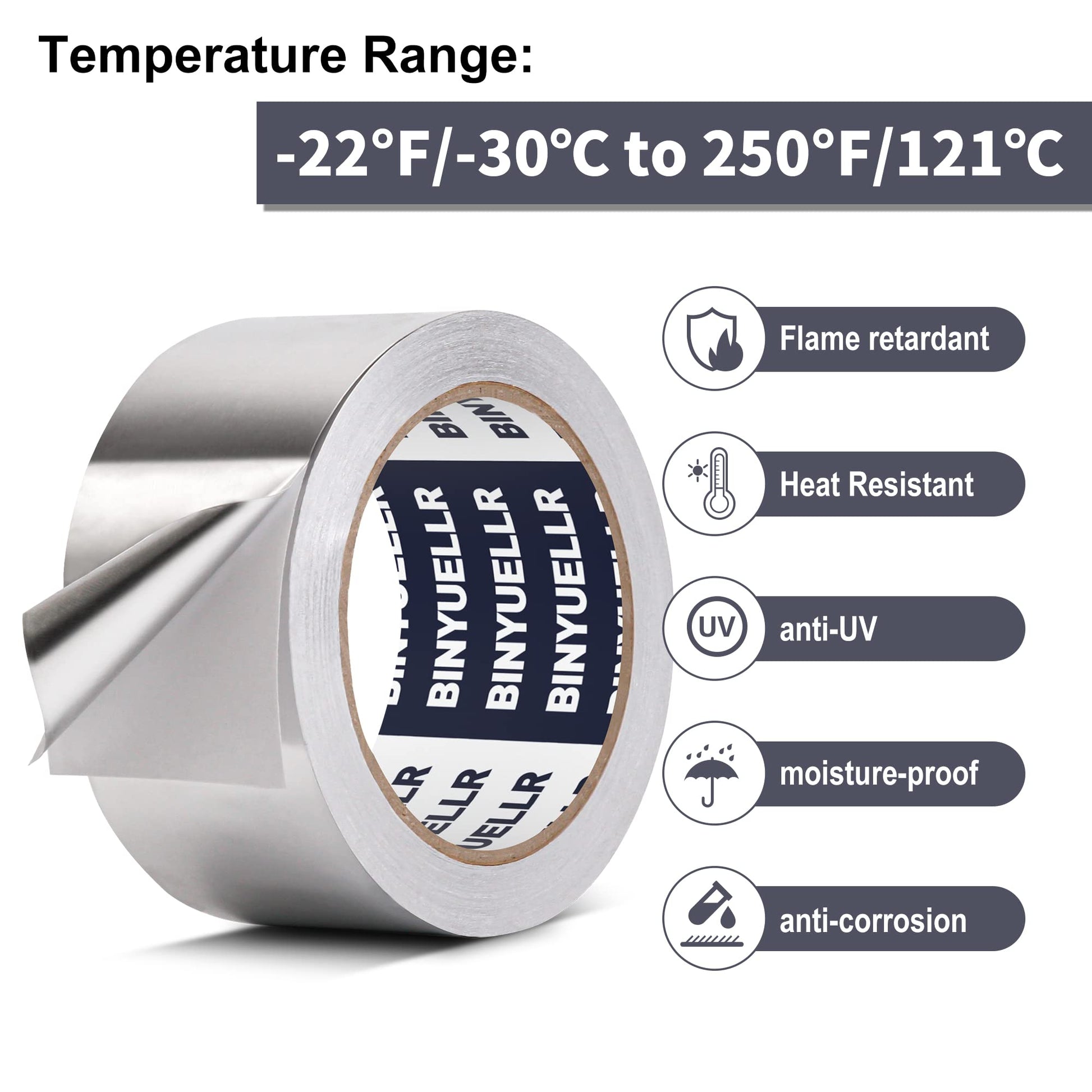 - ★High and low temperature resistance: Heat resistant aluminum foil tape, withstand the temperature range of -22°F to 250°F, provides lasting adhesion at low and high temperature, strong paste, suitable for indoor and outdoor, extreme environment.