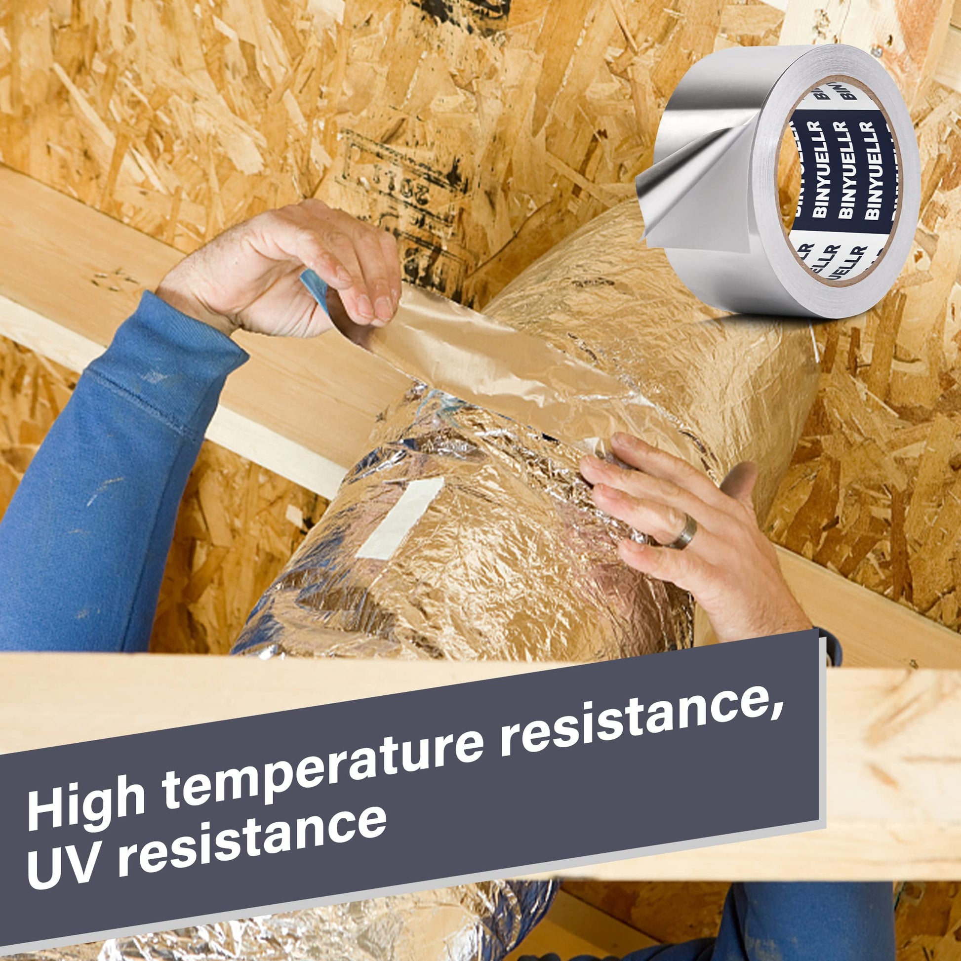 Binyuellr Aluminum Foil Tape - 2 Inch x 65 Feet, HVAC Tape Silver Metal Tape for Ductwork, Heavy Duty Duct Tape for Heat Insulation, Reflective Tape, Dryer Vents