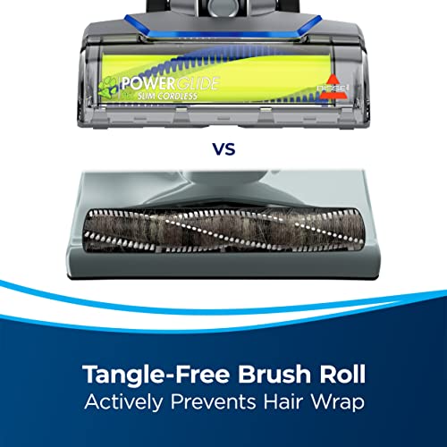 Details: Pick up pet messes almost anywhere in your home with BISSELL® PowerGlide® Pet Slim Cordless stick vacuum. It's engineered with our patented Tangle-Free Brush Roll, so you don't have to worry about that annoying hair that gets wrapped around the brushes of other vacuums. The powerful lithium-ion battery provides up to 30 minutes of cordless cleaning.* PowerGlide® Pet Slim Cordless vacuum easily converts to a handheld vacuum and works with the included 3-in-1 rotating pet hair upholstery tool, crevice tool and dusting brush to clean upholstery, stairs and other soft surfaces where dirt and debris accumulate. Plus, the floor nozzle is easy to remove, too! So, you can use this stick vac as an extended reach vacuum cleaner to tackle high and low places around your home. It’s also engineered with an Easy Empty™ Dirt Tank with CleanSlide™ Technology, letting you control the dust and dander when you empty the dirt tank, and eliminating the clean up after the cleanup. And when you’re done cleaning, the vacuum and its tools store together on the included wall mount, so they’re always ready to clean, whenever you need them. BISSELL proudly supports BISSELL Pet Foundation® and its mission to help save homeless pets. When you buy a BISSELL product, you help save pets, too. We’re proud to design products that help make pet messes, odors and pet homelessness disappear. *Run time varies based on cleaning mode and accessories.