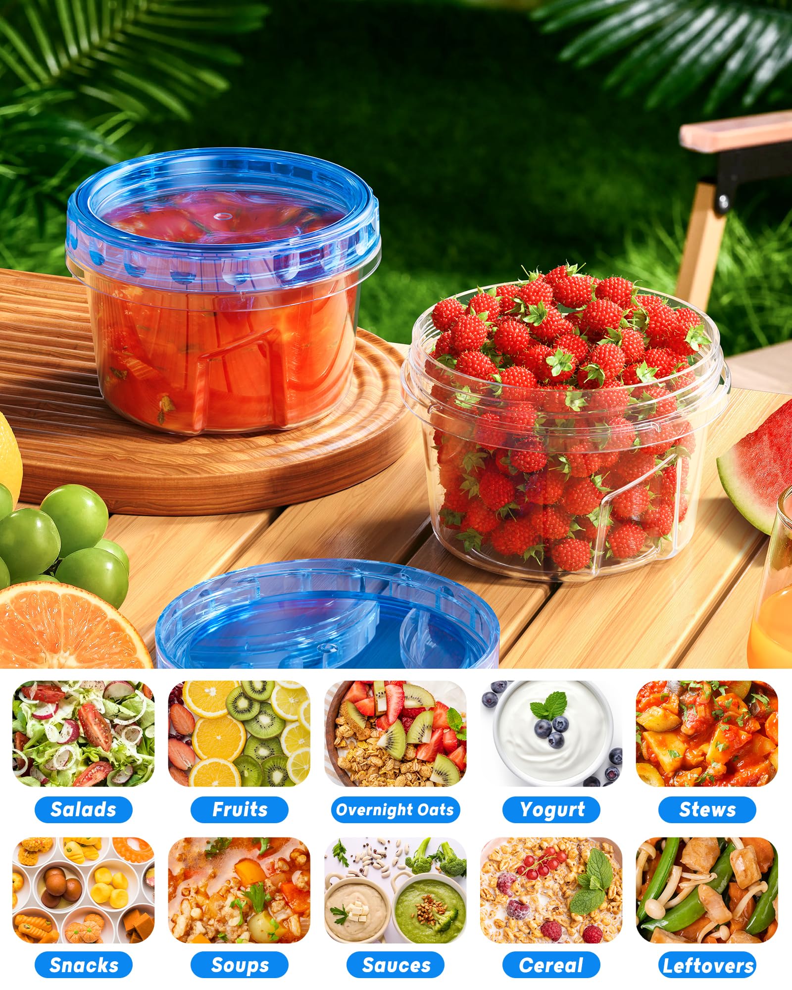 - Leakproof Twist-Top Lids: Our overnight oats containers with lids are designed with an airtight twist-top lid, so there's no need to worry about spills or messes. The lids also keep food fresher longer and minimize waste.