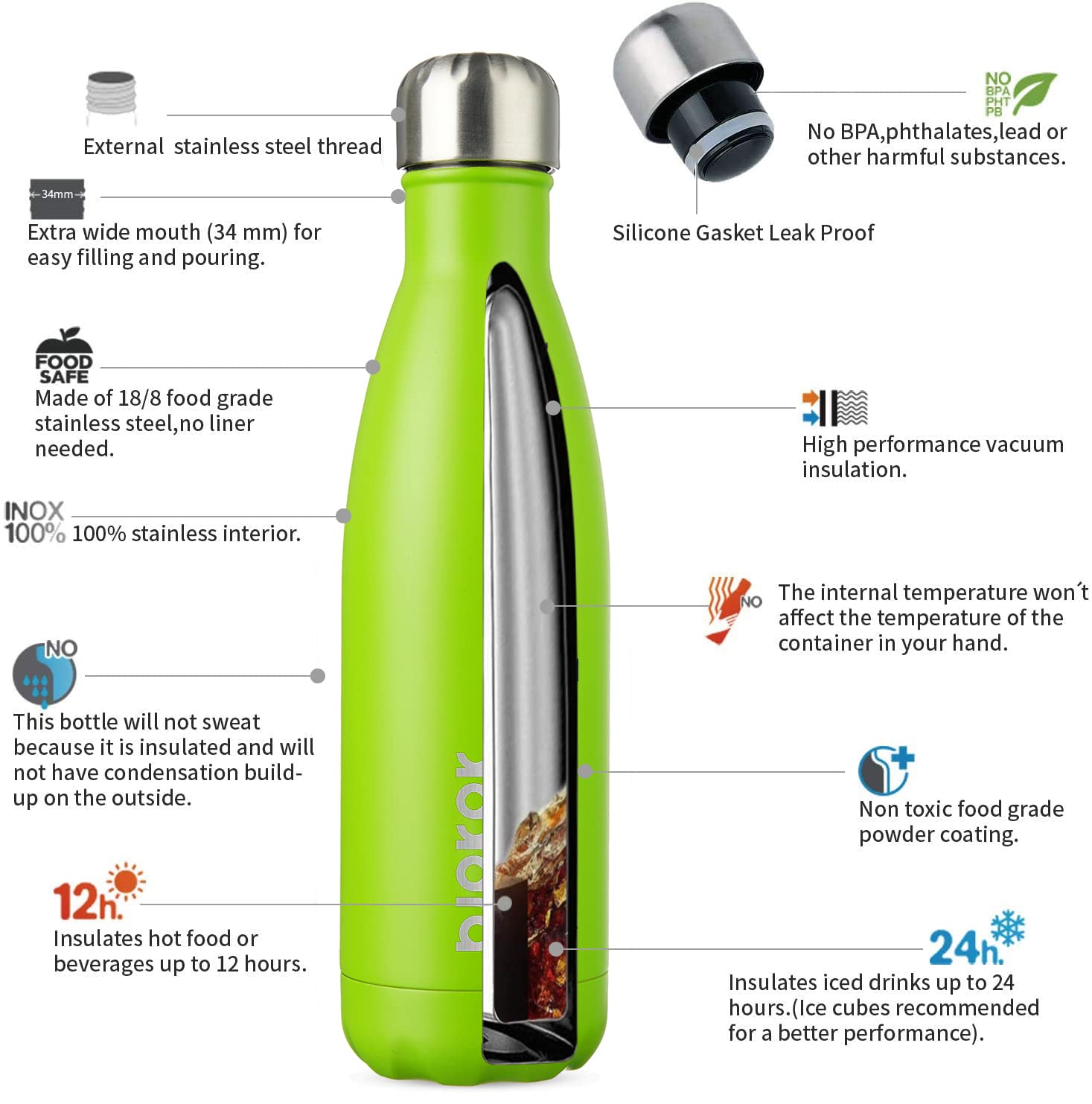 Details: BJPKPK Insulated Water Bottles -17oz/500ml -Stainless Steel Water bottles,Sports water bottles Keep cold for 24 Hours and hot for 12 Hours,BPA Free kids water bottles for School- Green