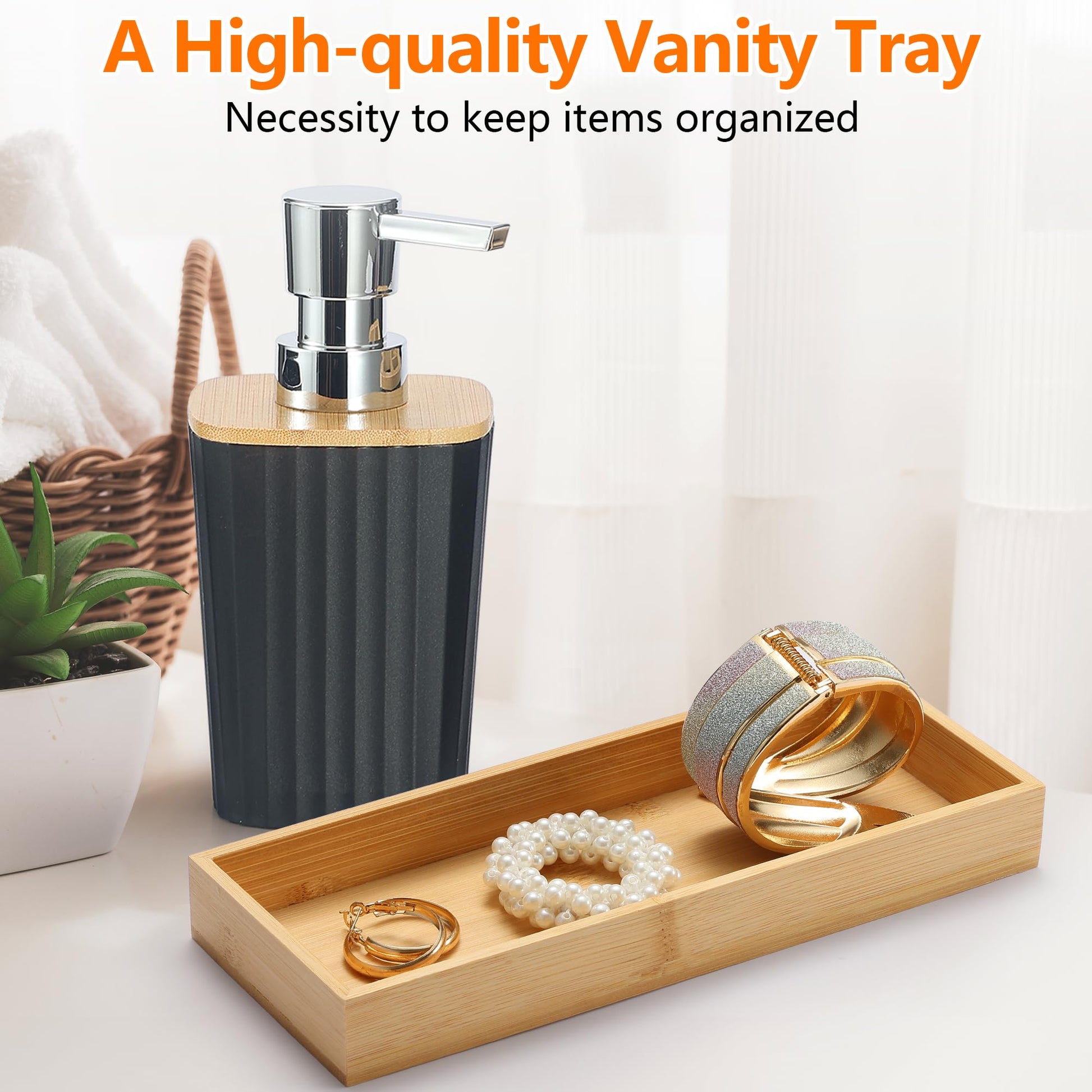- PREMIUM MATERIALS: Our bathroom accessories set combines the durability of plastic with the natural elegance of bamboo, offering unmatched resilience and sophistication. Unlike fragile glass or ceramic, our set withstands everyday use with ease. Elevate your bathroom with lasting beauty and style.
