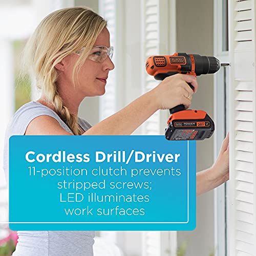BLACK+DECKER 20V MAX Power Tool Combo Kit, 4-Tool Cordless Power Tool Set with 2 Batteries and Charger (BD4KITCDCRL)