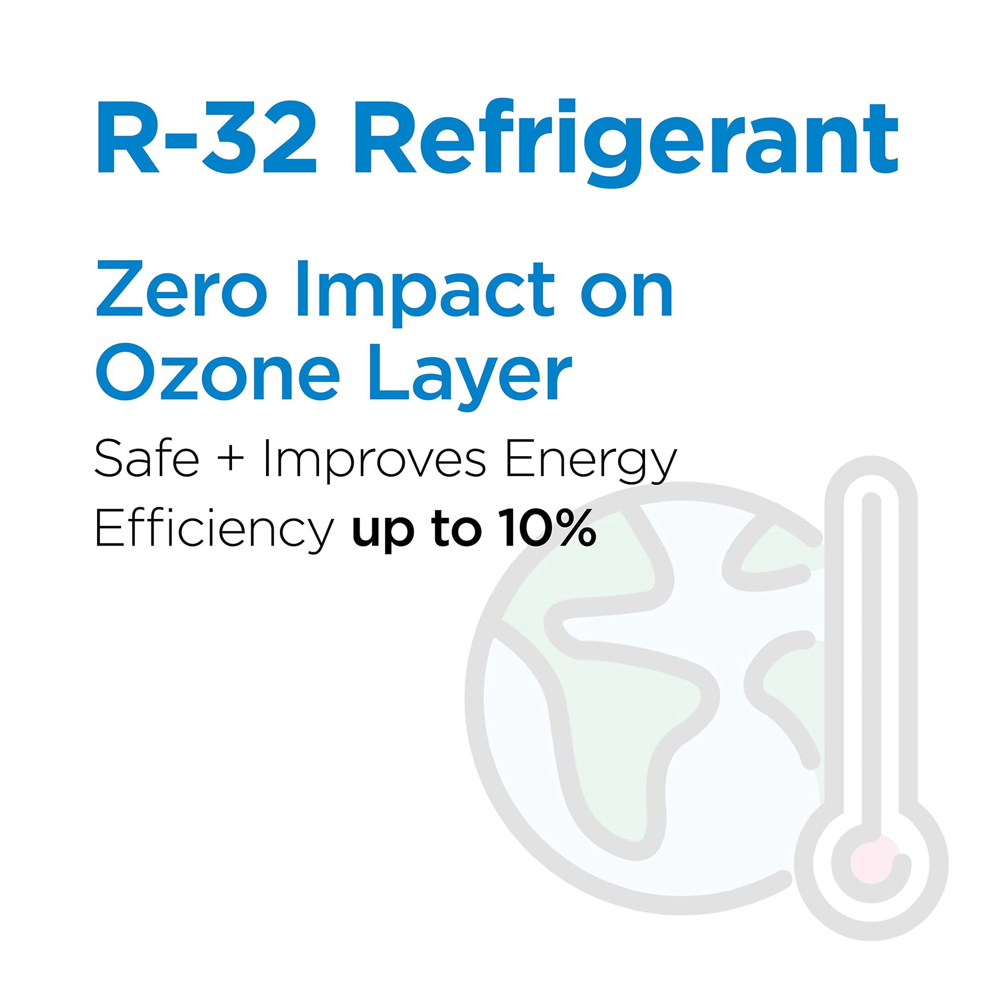- This window AC uses R32 refrigerant (.35 ounces), which has zero impact on the ozone layer and improves efficiency by up to 10% compared with R-410A.