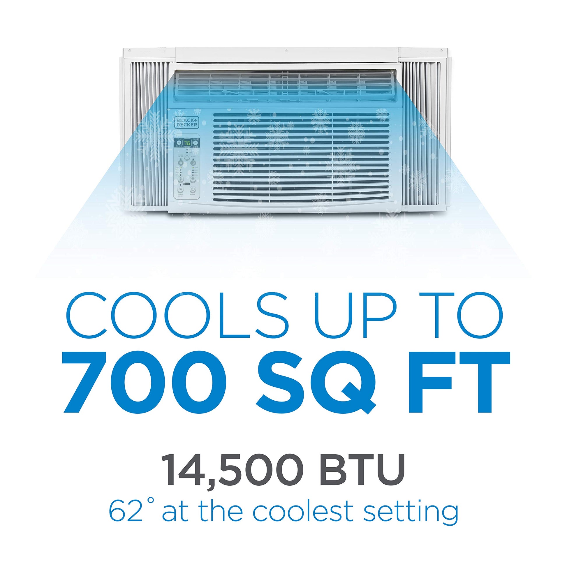 - Ideal for bedroom and other small rooms: Our 14500 BTU AC unit (21.5" x 19" x14.6") offers consistent, quick and highly effective cooling for rooms up to 700 square feet. Perfect for bedrooms, offices, playrooms, cabins, living rooms and apartments.