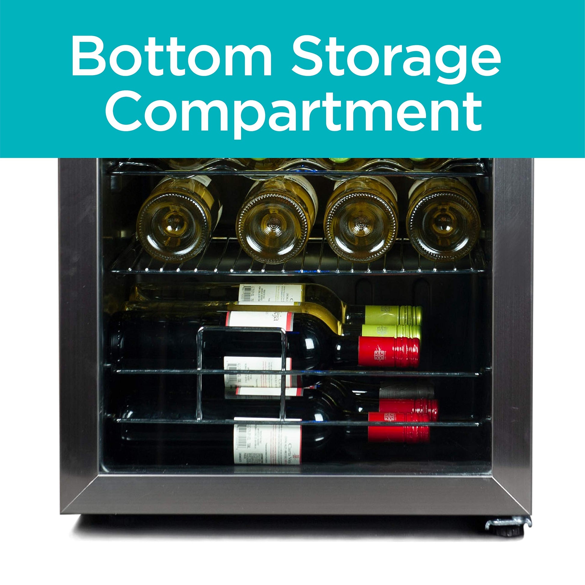 - 26 BOTTLE STORAGE: Store up to 26 bottles of your favorite vino, champagne and prosecco with this 48.5-lb. space-saving fantastic wine cellar. Our BLACK+DECKER wine fridge (17.5" x 18.3” x 31.5”) is ideal for all types of bottles.
