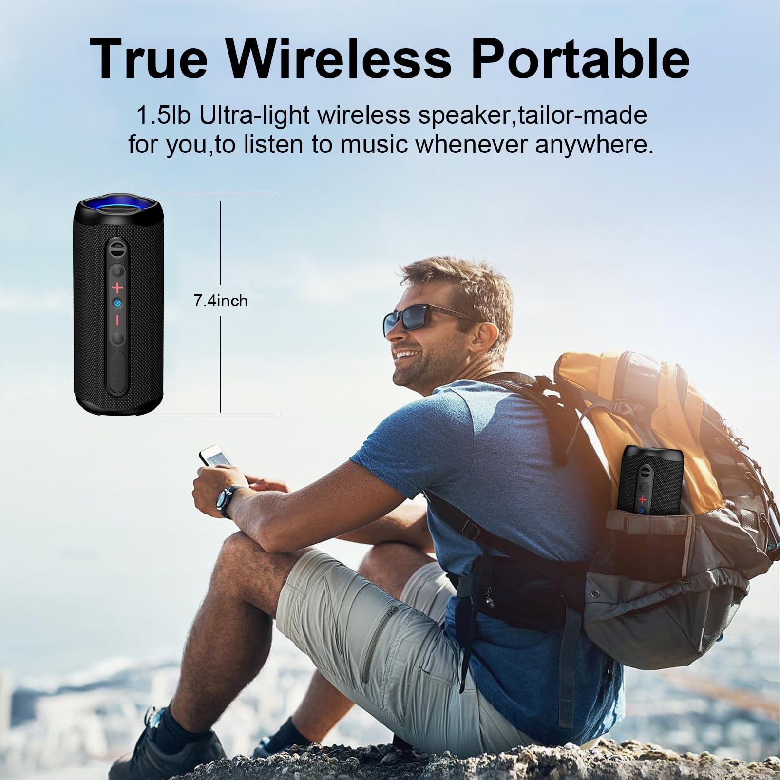 - 【IPX7 Waterproof and Tough】Bluetooth speaker is dustproof and waterproof, sturdy and durable. It's ideal for outdoor activities, perfect for use at party, pool, beach, car, boat, golf cart, RV, bike, camping or hiking, and more. IPX7 protects against water splashes and spills, resists light water spray and splashes, and does not partially or fully submerge the speaker in water.