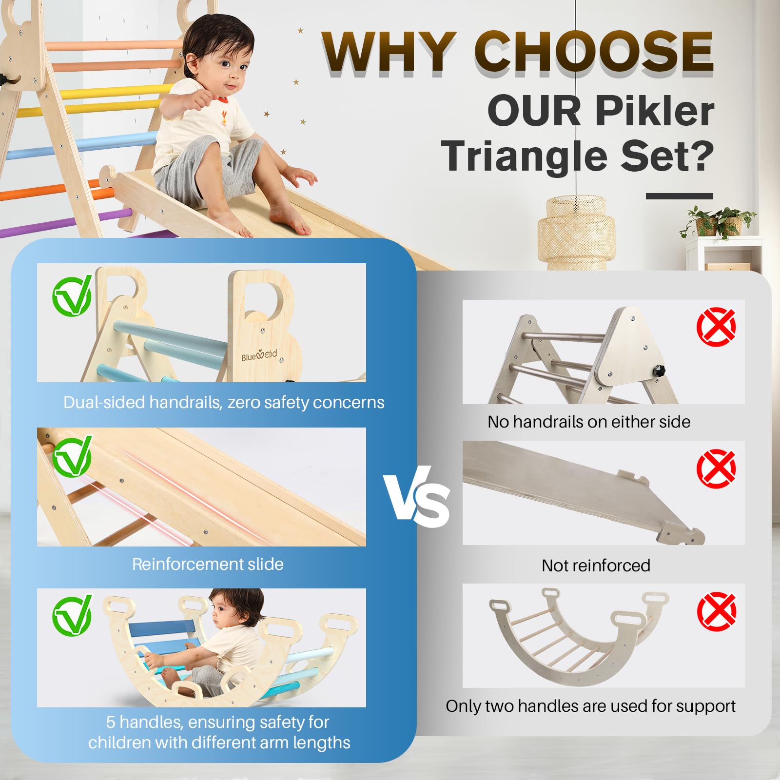 - Perfect Present for Growth: The upgraded BlueWood Climbing Set is designed for all stages of a baby’s growth. Made from natural solid wood, it offers a comfortable touch, allowing your child to grow through play and learn through life.