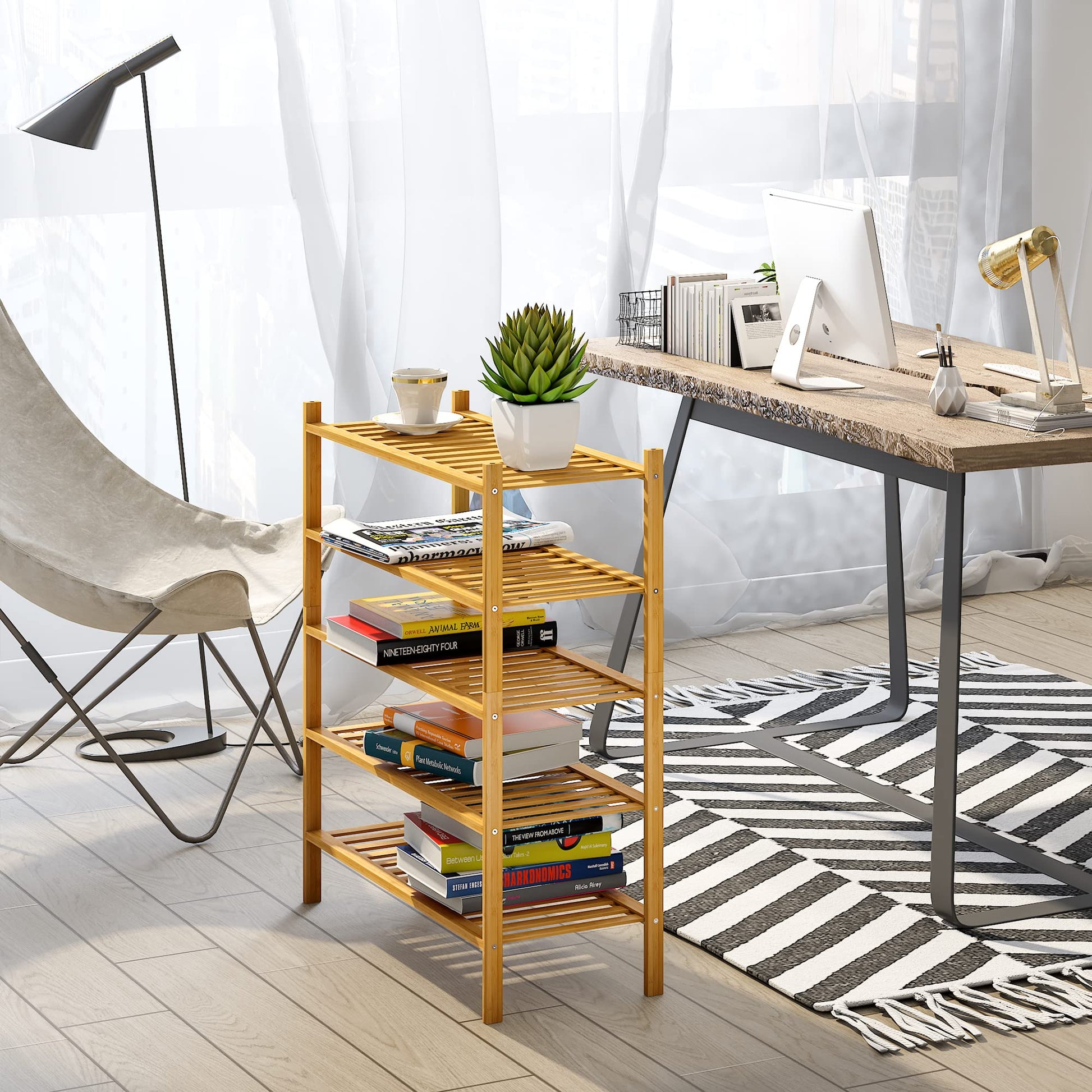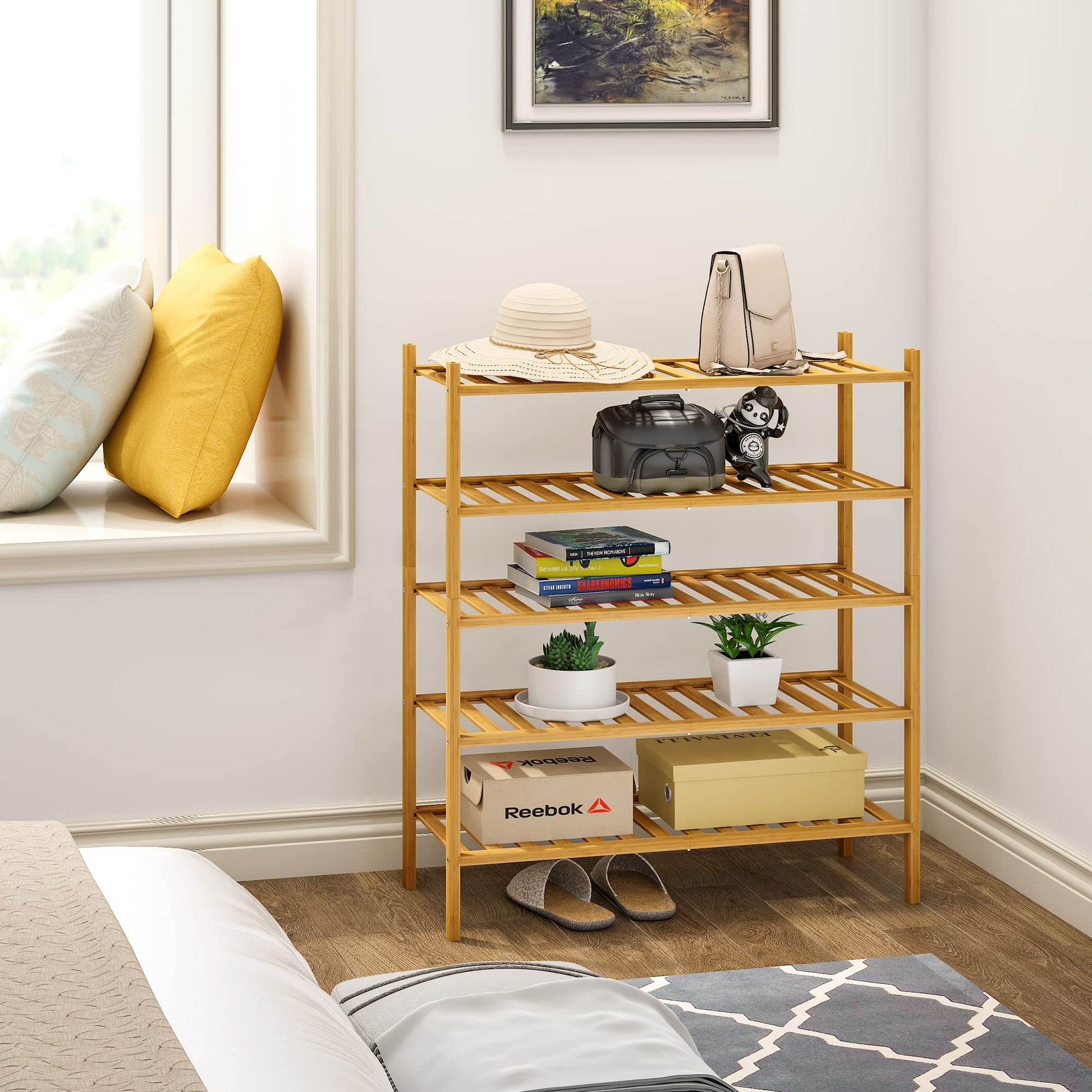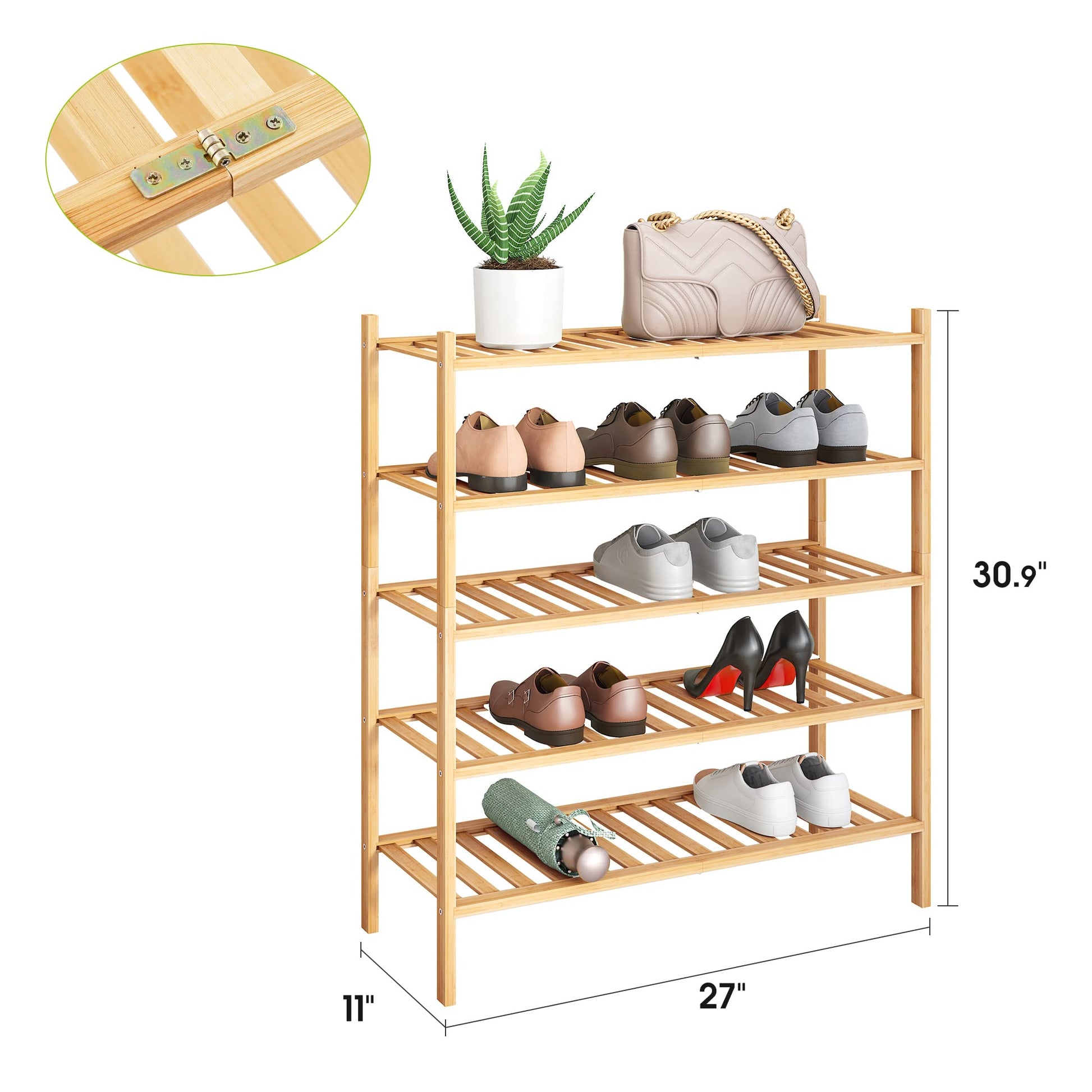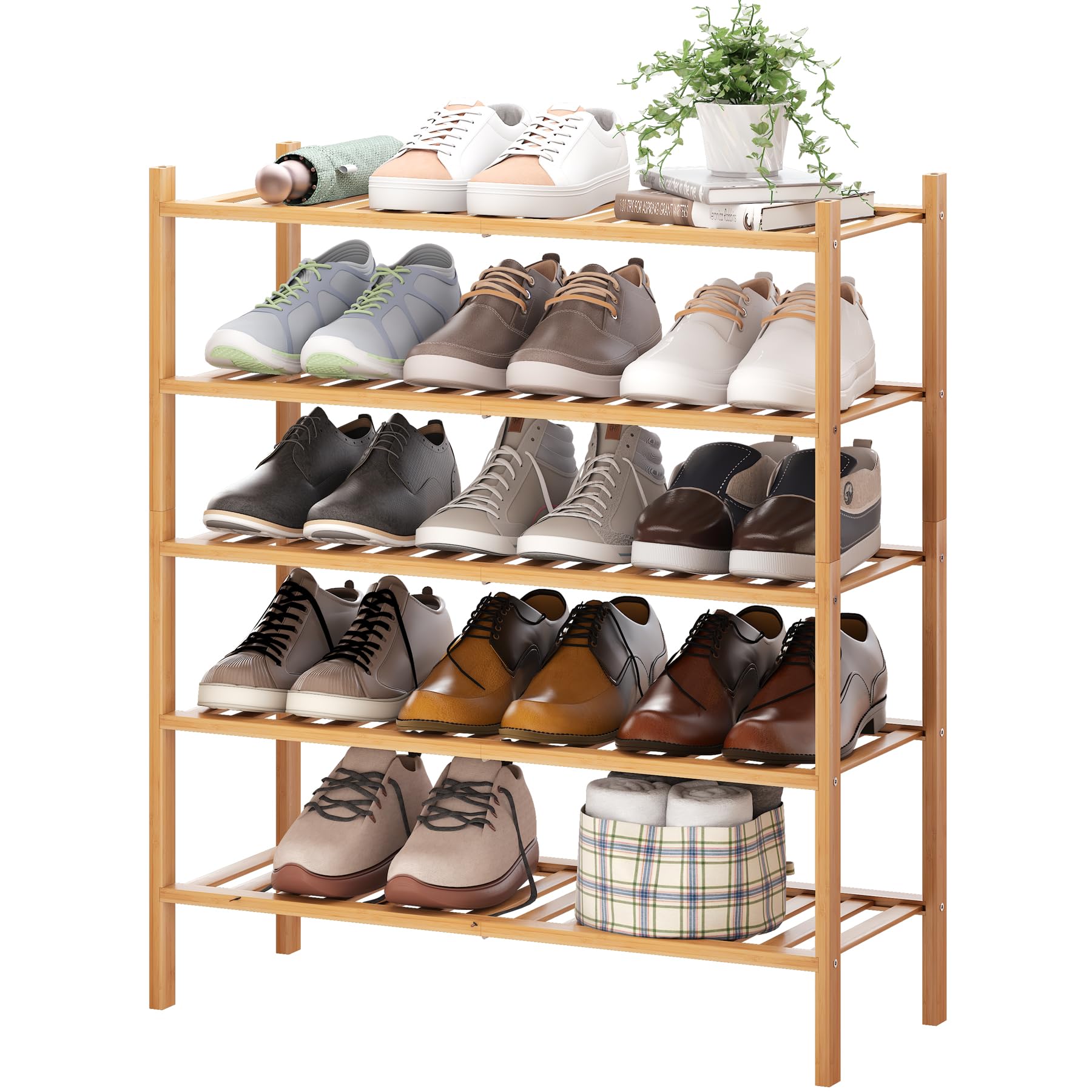 BMOSU 5-Tier Bamboo Shoe Rack Premium Stackable Shoe Shelf Storage Organizer for Hallway Closet Living Room Entryway Organizer (Natural Bamboo)