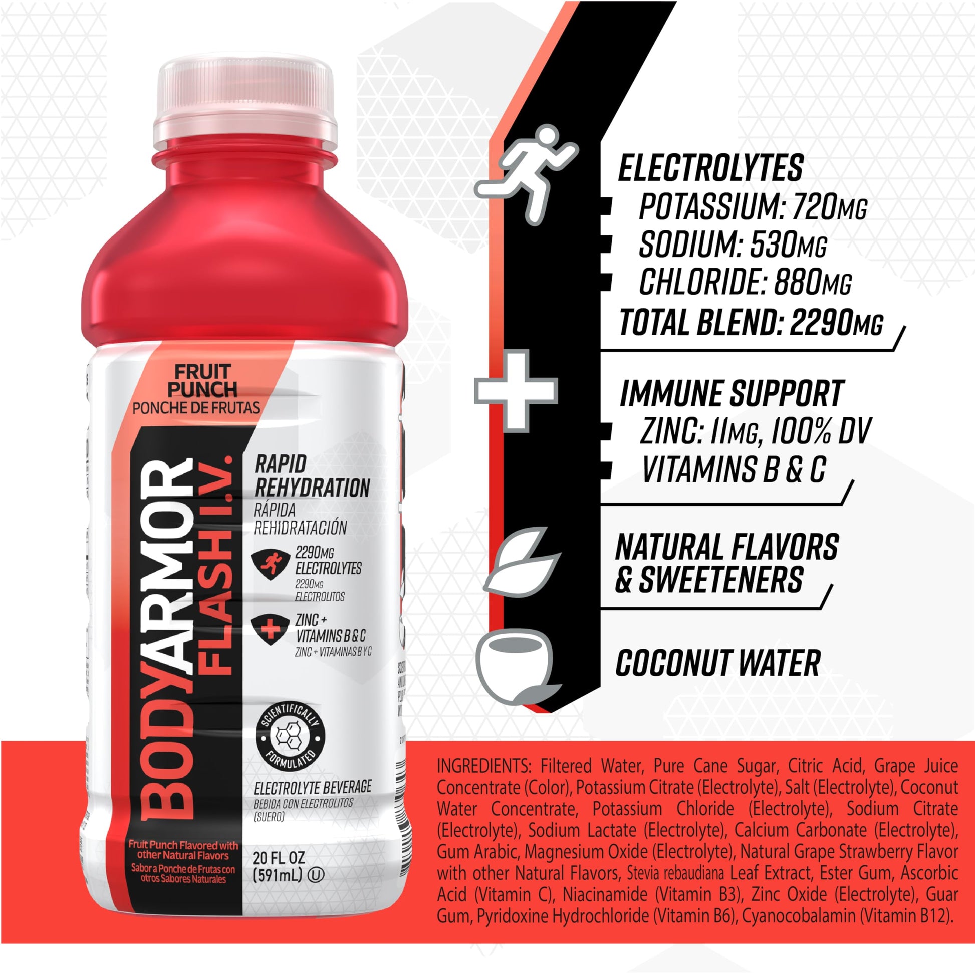 BODYARMOR Flash I.V. Electrolyte Beverage, Fruit Punch, 20 Fl Oz (Pack of 12)