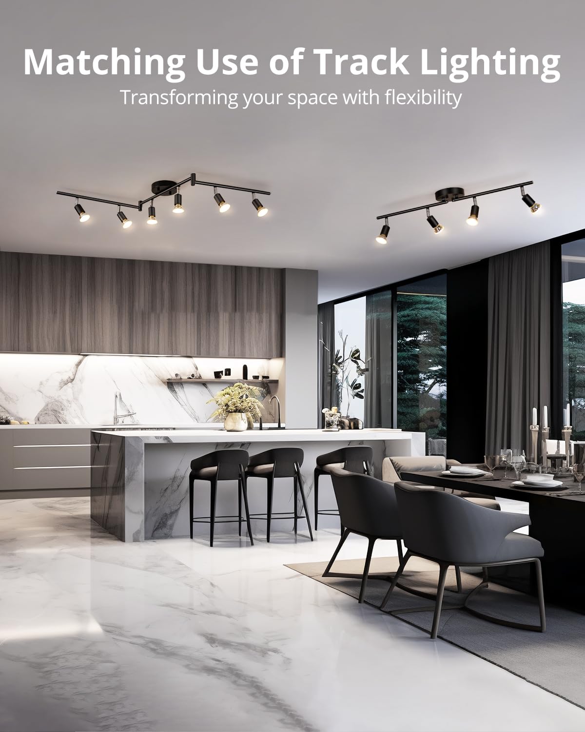 - [Multi-Angle Lighting] The lamp arm can rotate 240° horizontally, and the lamp head can rotate 350° horizontally and 90° up and down. You can flexibly adjust the shape of the LED track light you like, so that the light can reach any corner you want to illuminate.
