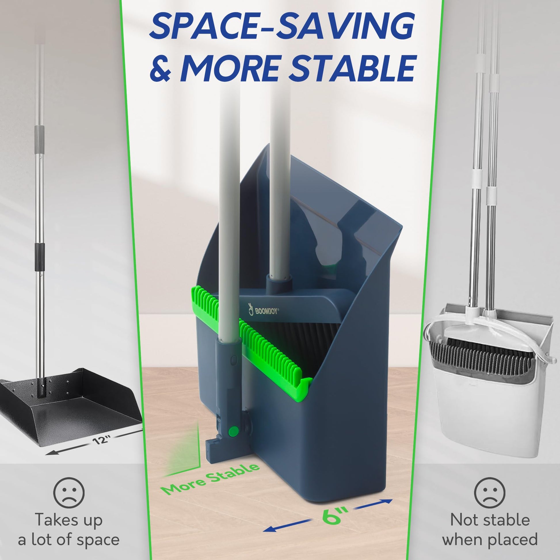 BOOMJOY Adjustable Broom and Dustpan Set