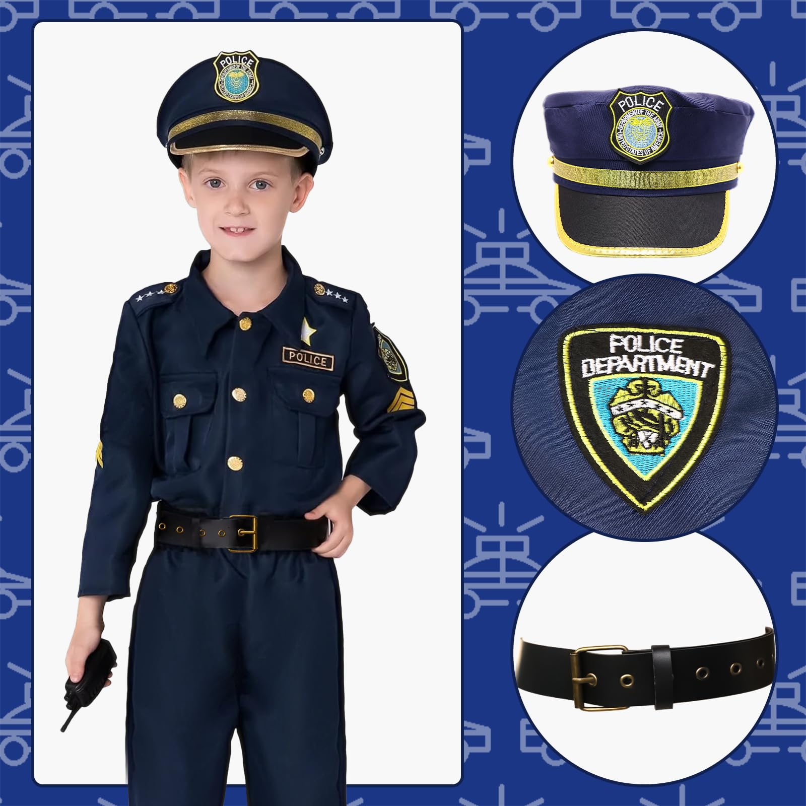 - Boys Dress Up Costumes for Play With Everything A Child Needs to Look The Part To Spur Imaginative Play. This toddler dress up clothes set is the perfect way to honor and teach our kids about first responders and true heroes. Let your child engage in meaningful imaginative play and keep them busy for hours.