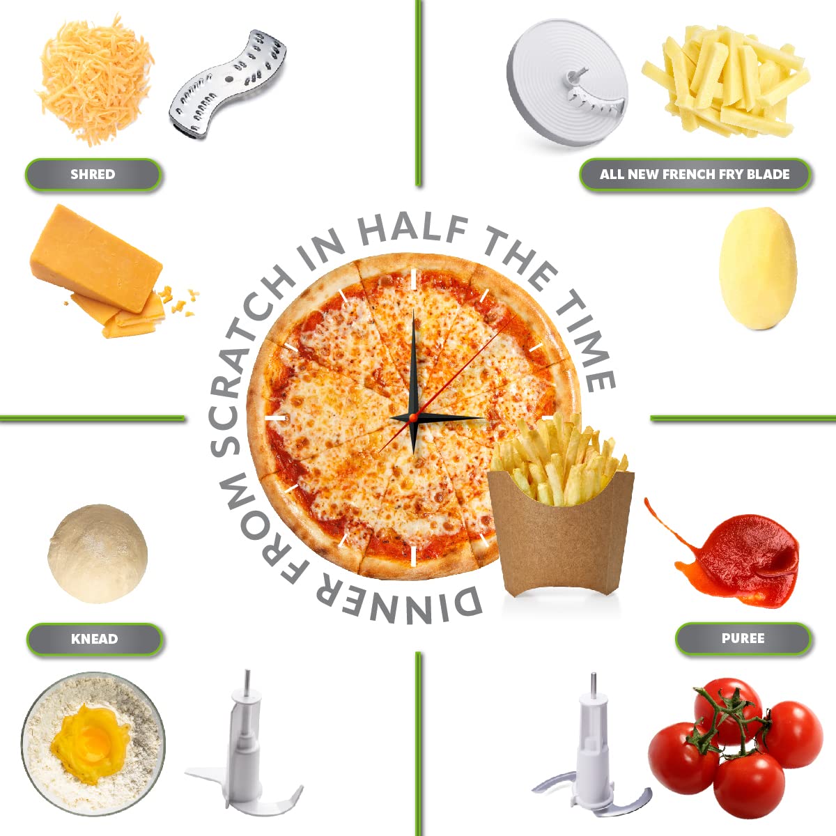 - MORE BLADES WITH ADDED FRENCH FRY SYSTEM - Along with the original seven (7) blades included in the FP3020 model (grating insert, coarse shredding insert, fine shredding insert, fine slicing insert, whipping attachment/kneading hook, S blade, and chopper attachment), you will also get the Blade 21 for French Fry System!