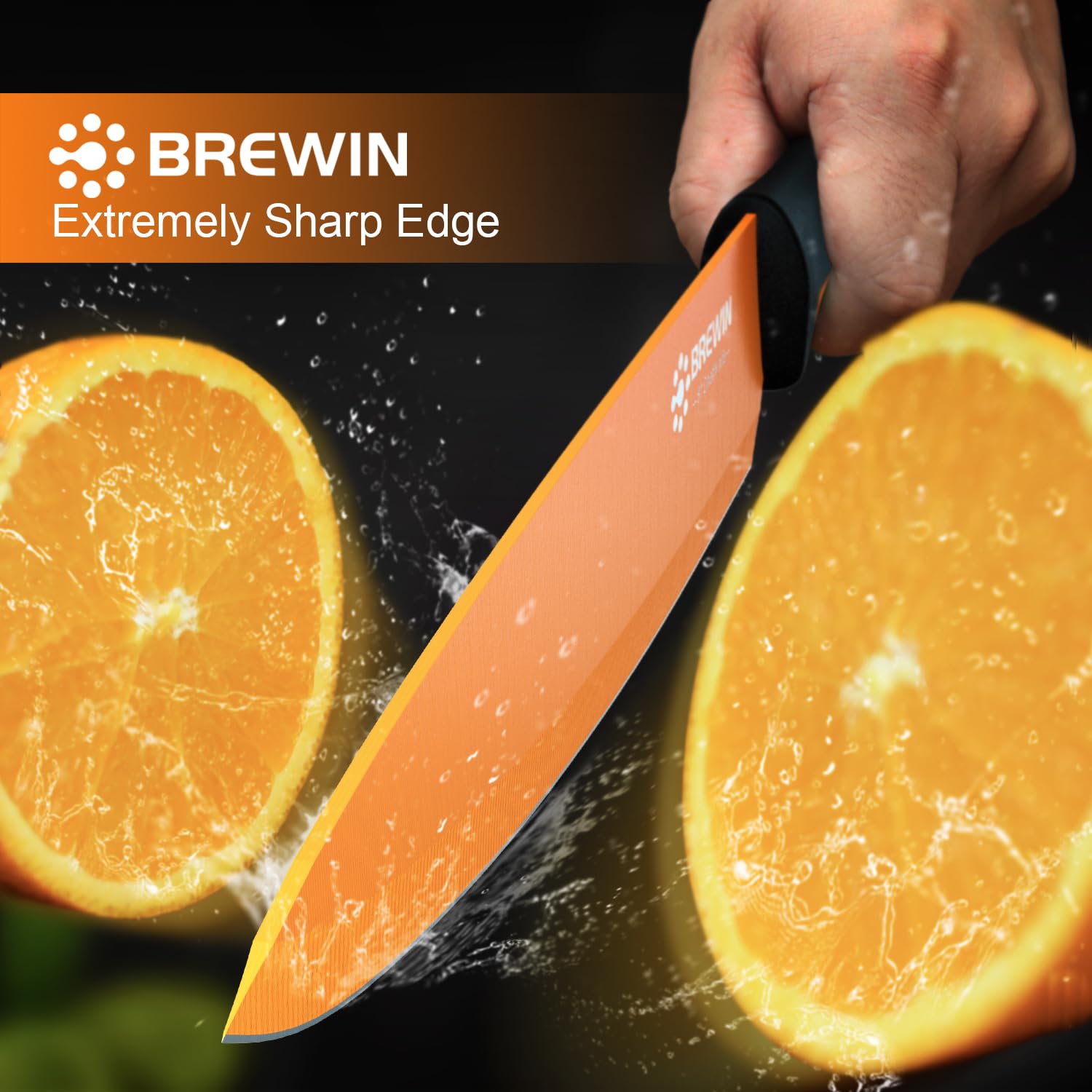 - RAZOR SHARP & DURABLE EDGE - Brewin Kitchen knife set is crafted from premium German 1.4116 stainless steel, providing an excellent balance between long-lasting sharpness and durability. The razor-sharp edge is engineered with a 56+ Rockwell hardness score and hand polished at 14-16 degrees per side, which ensures precise and effortless cutting every time.